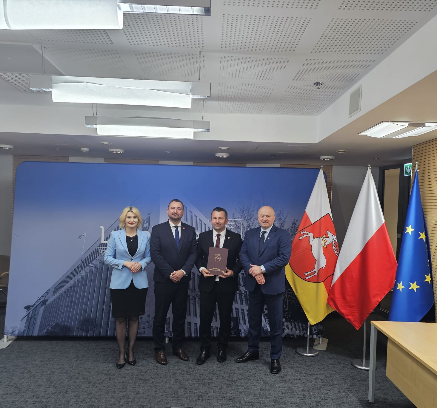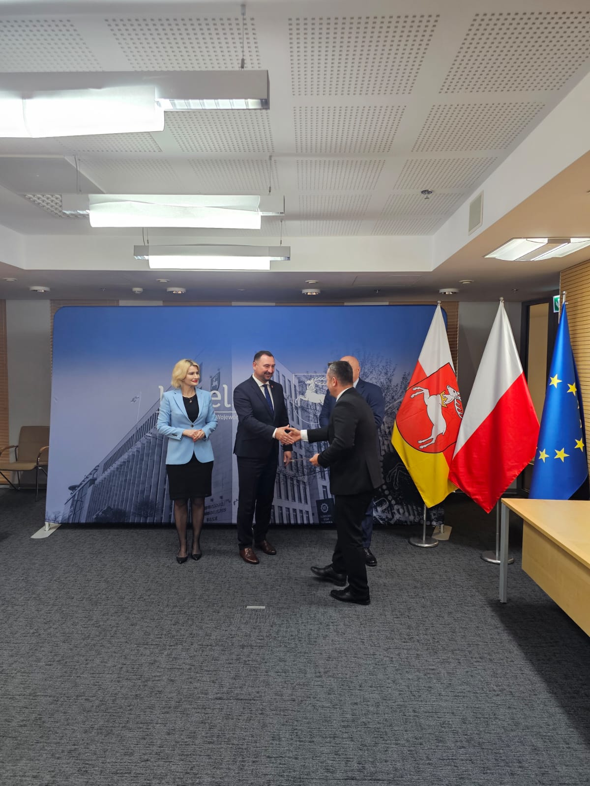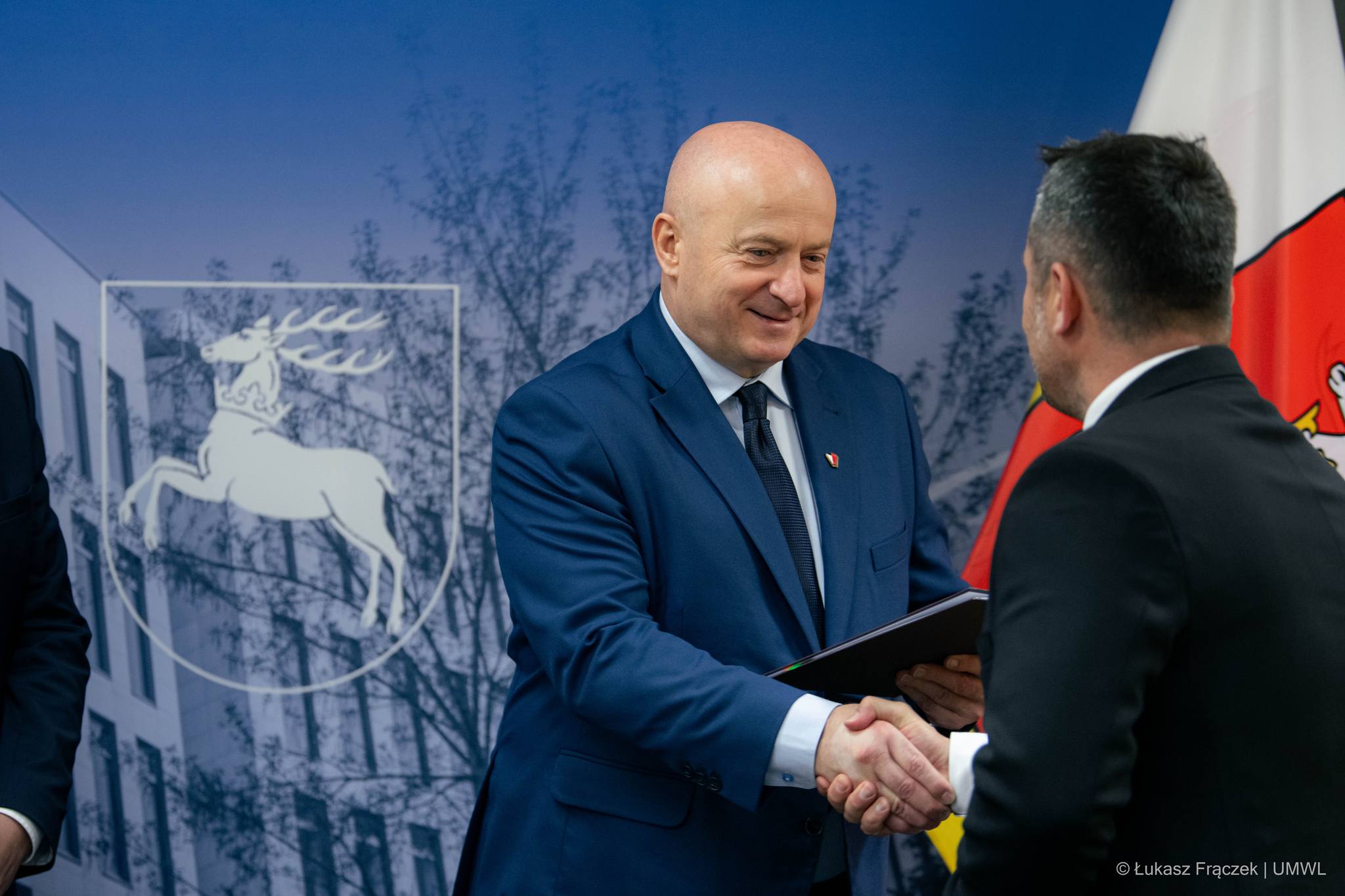 Marszałek Jarosław Stawiarski i wicemarszałek Marek Wojciechowski w dniu 25 czerwca 2024 r. wręczyli Wiesławowi Dyjachowi – Wójtowi Gminy Dzwola umowę na dotację na Modernizację (przebudowę) drogi dojazdowej do gruntów rolnych nr 109000L w obrębie ewidencyjnym Krzemień Pierwszy na działkach o nr ewid. 1962 i 1968/1 od km 0+453 do km 0+843.