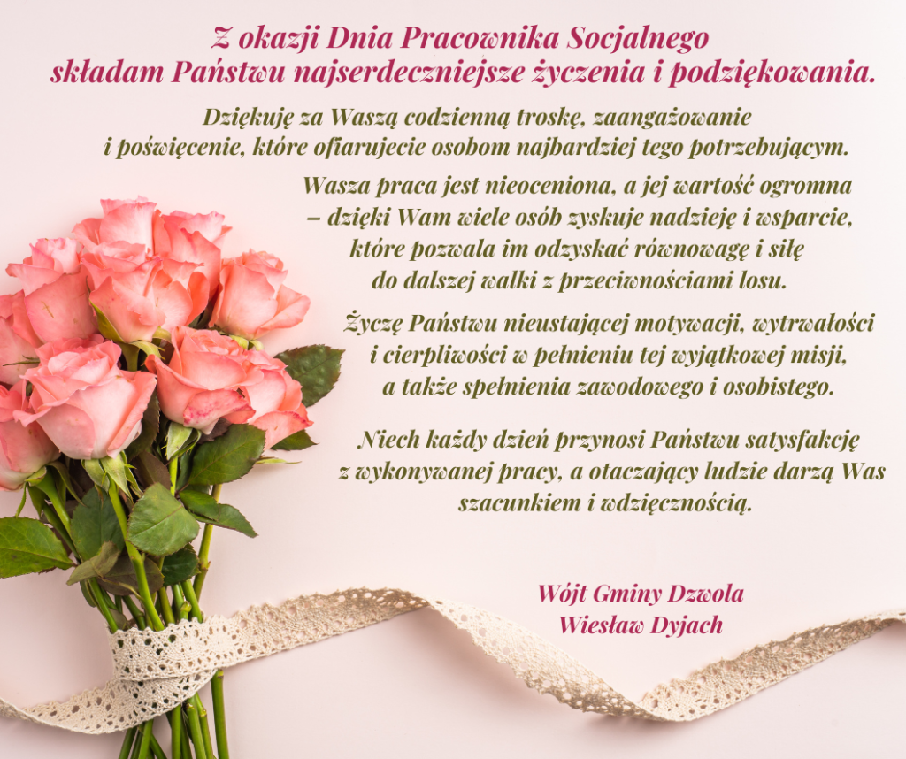 Dzień Pracownika Socjalnego Opublikowano dnia: 21 listopada 2025 - 12:34 Przypadający 21 listopada Dzień Pracownika Socjalnego to szczególna okazja do przekazania wyrazów uznania za zaangażowanie w służbę drugiemu człowiekowi.