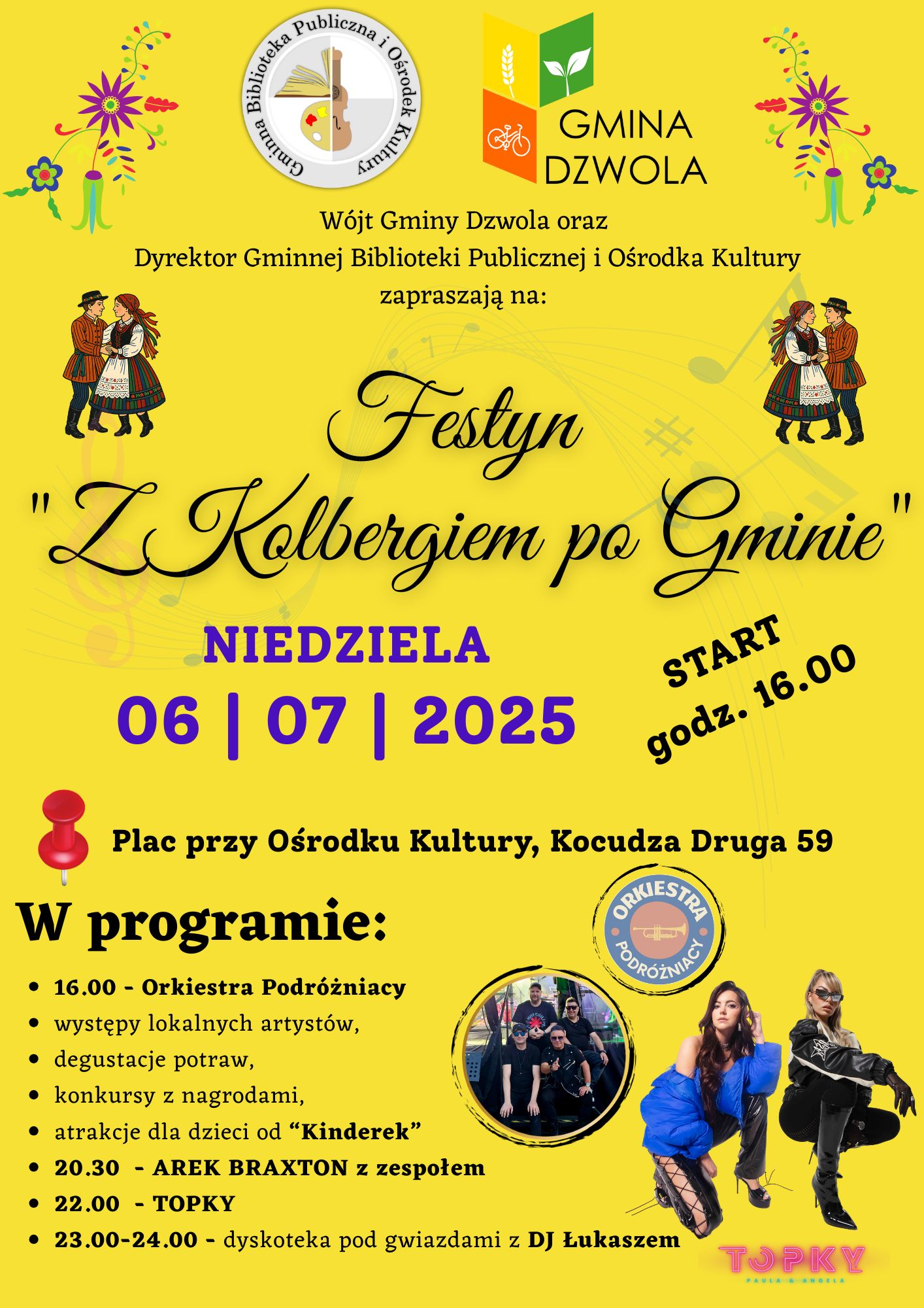 Festyn „Z Kolbergiem po gminie” Opublikowano dnia: 27 czerwca 2025 - 05:00 Zapraszamy na festyn ludowy do Kocudzy! Szczegóły na plakacie!
