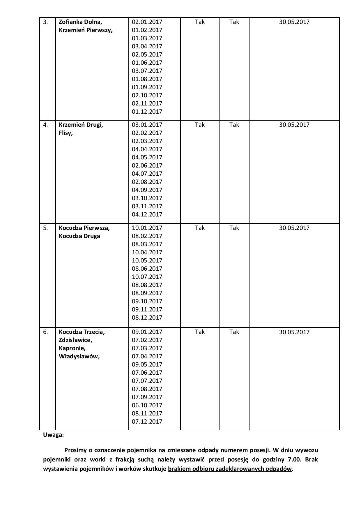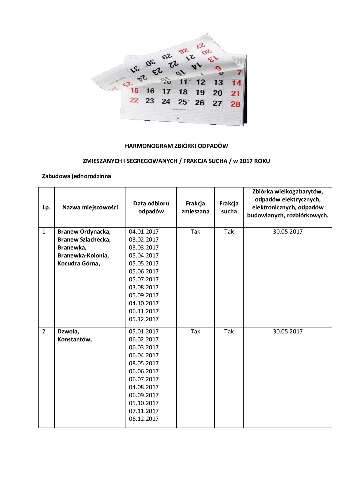 - Harmonogram zbiórki odpadów komunalnych na terenie Gminy Dzwola od 01.01.2025 r. do 31.12.2025 r.