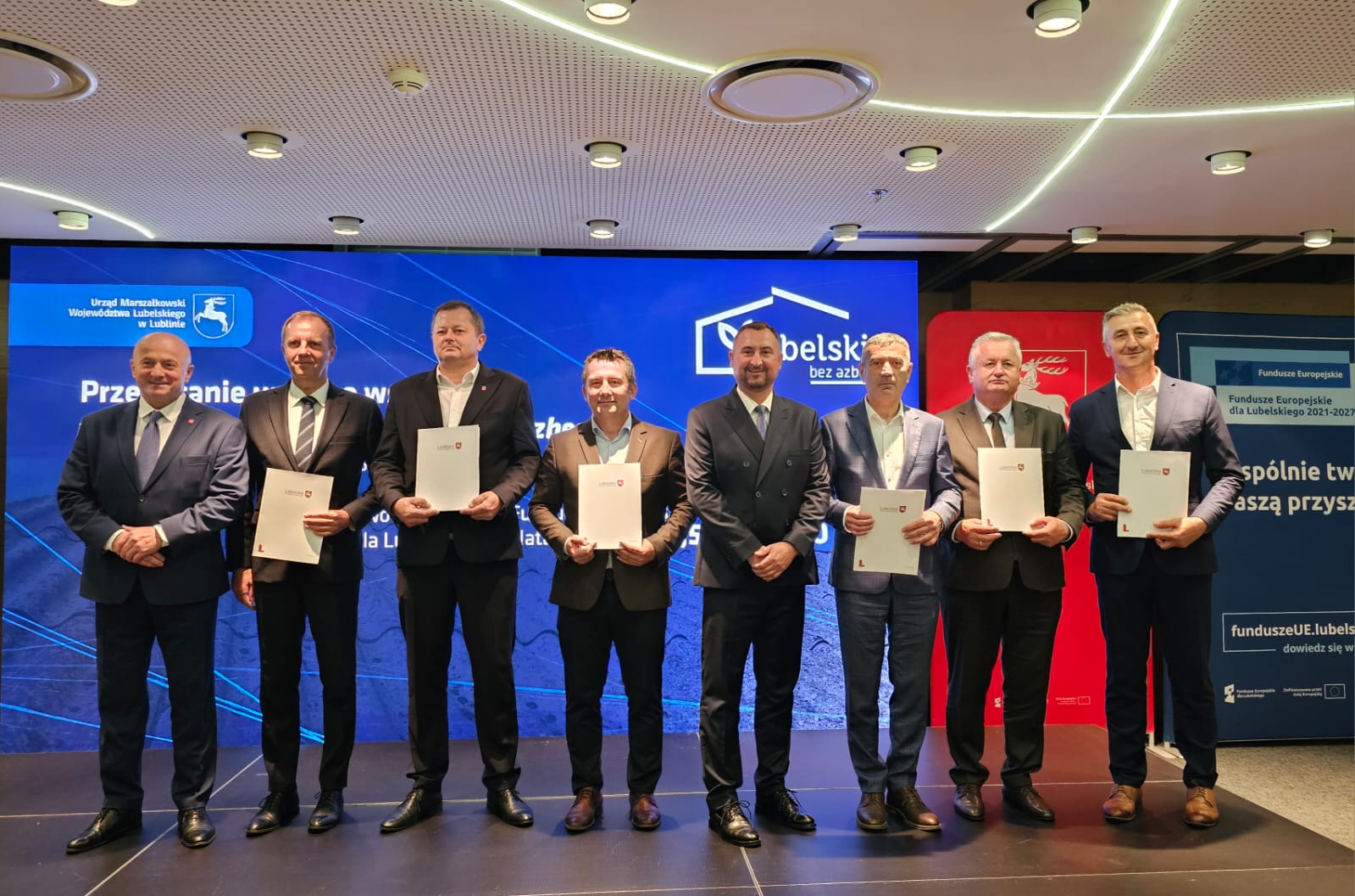 W dniu 15 września 2025 r. Wójt Gminy Dzwola Wiesław Dyjach przy kontrasygnacie Skarbnik Gminy Anety Gilas podpisał umowę współpracy z Marszałkiem Województwa Lubelskiego Jarosławem Stawiarskim na realizację zadań na potrzeby projektu pt. „Lubelskie bez azbestu” w ramach Działania 3.12 Usuwanie ze środowiska wyrobów zawierających azbest w ramach Funduszy Europejskich dla Lubelskiego 2021-2027 (FELU).