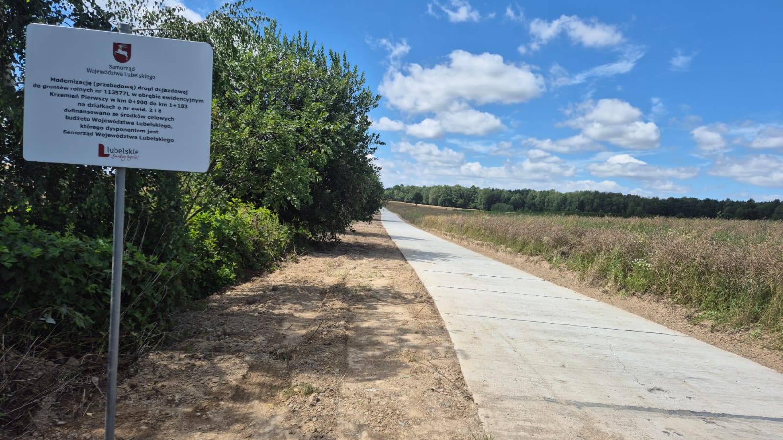 W dniu 22 lipca 2025 r. dokonano odbioru zadania inwestycyjnego obejmującego „Modernizację (przebudowę) drogi dojazdowej do gruntów rolnych nr 113577L w obrębie ewidencyjnym Krzemień Pierwszy w km 0+900 do km 1+183 na działkach o nr ewid. 2 i 8”.