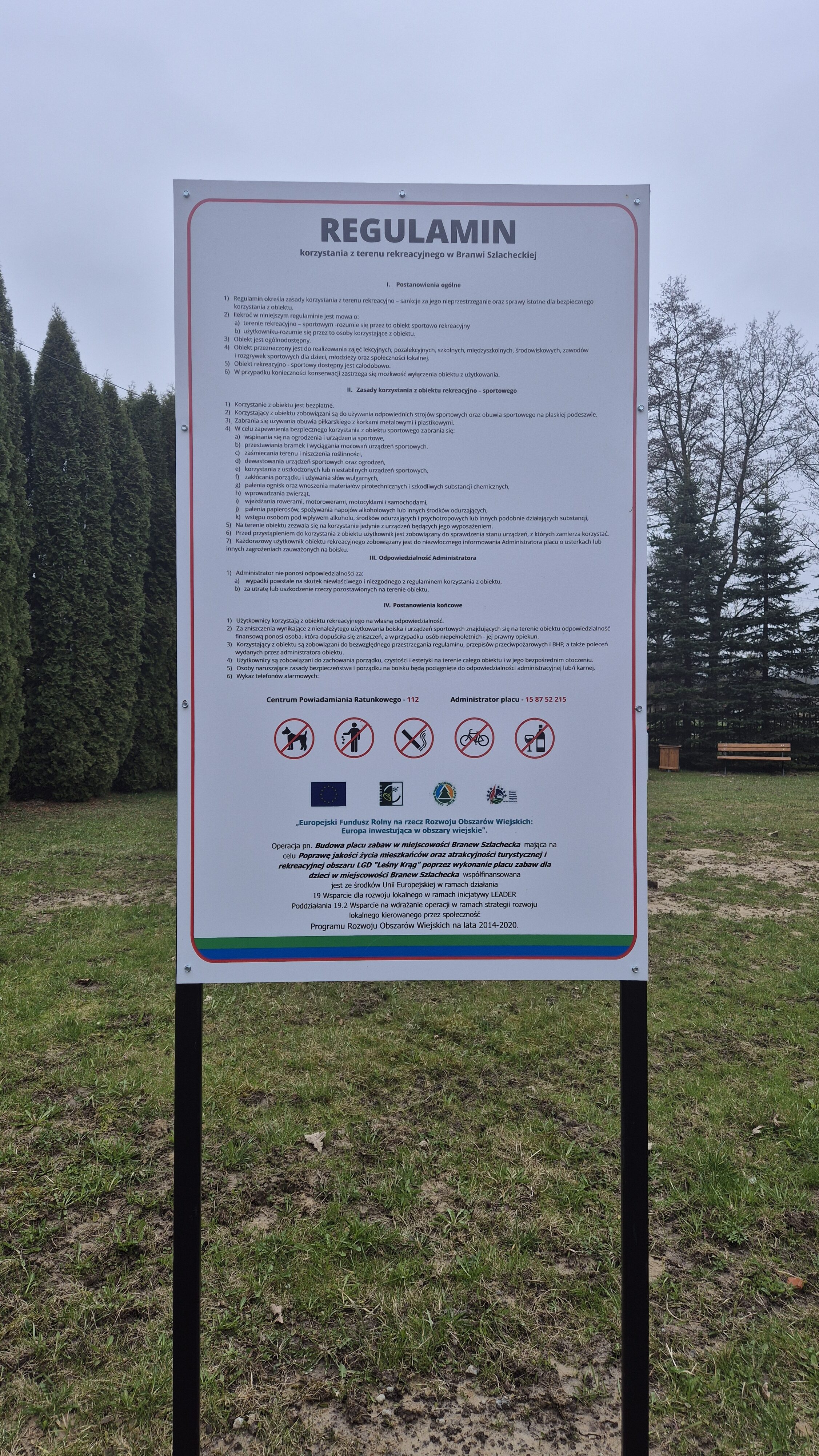 Inwestycja ta pn. „Budowa placu zabaw w miejscowości Branew Szlachecka” ma na celu Poprawę jakości życia mieszkańców oraz atrakcyjności turystycznej i rekreacyjnej obszaru LGD „Leśny Krąg” poprzez wykonanie placu zabaw dla dzieci w miejscowości Branew Szlachecka współfinansowana jest ze środków Unii Europejskiej w ramach działania 19 Wsparcie dla rozwoju lokalnego w ramach inicjatywy LEADER Poddziałania 19.2 Wsparcie na wdrażanie operacji w ramach strategii rozwoju lokalnego kierowanego przez społeczność Programu Rozwoju Obszarów Wiejskich na lata 2014-2020.