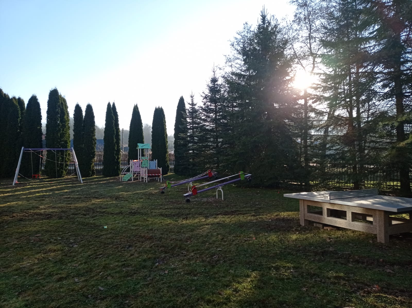 W skład placu zabaw wchodzą następujące urządzenia: huśtawka podwójna, zestaw zabawowy, karuzela krzyżowa czteroramienna, huśtawka ważka (huśtawka wagowa), ławki parkowe, kosze na śmieci oraz tablica informacyjna.