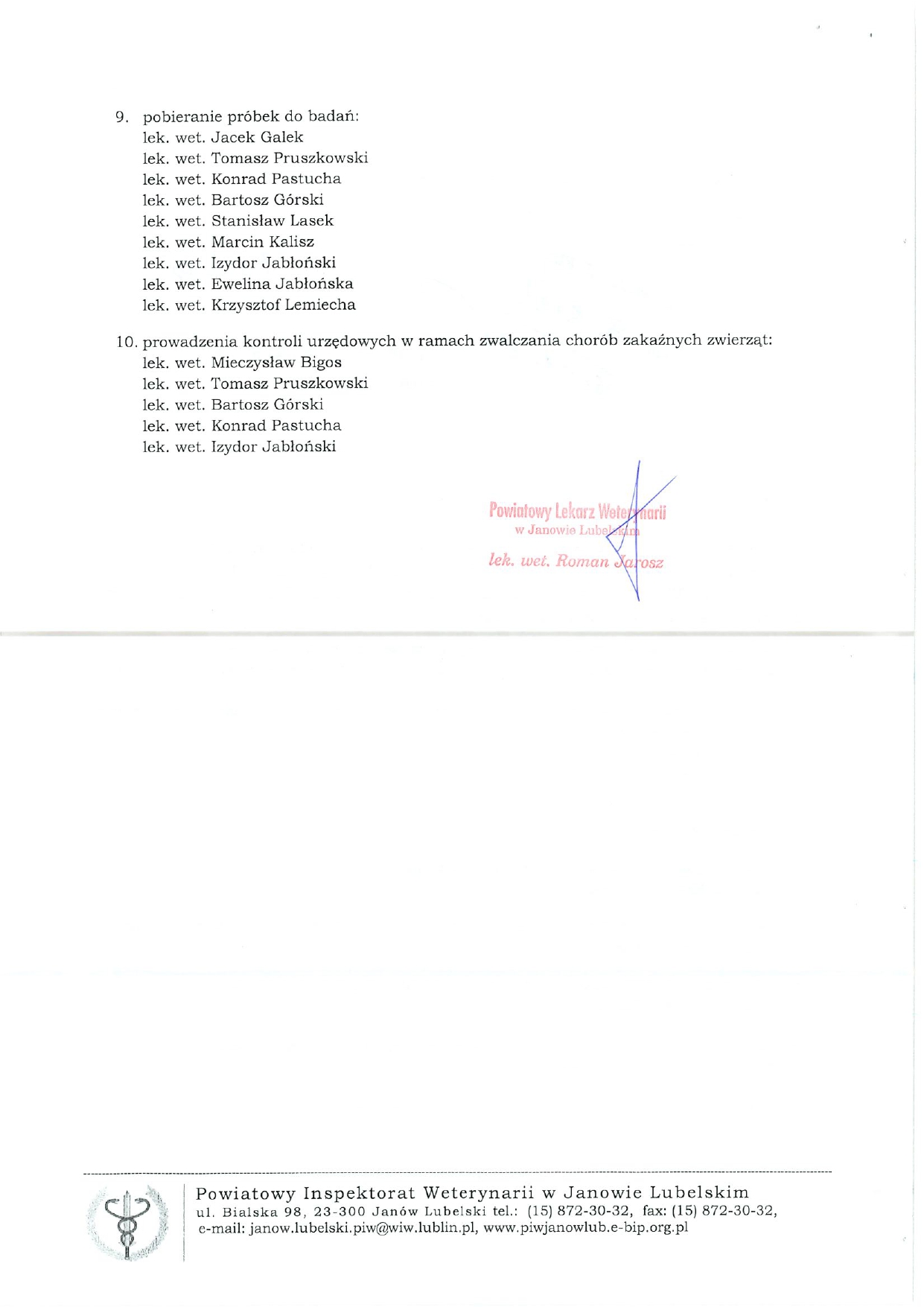 Ogłoszenie Powiatowego Lekarza Weterynarii w Janowie Lubelskim