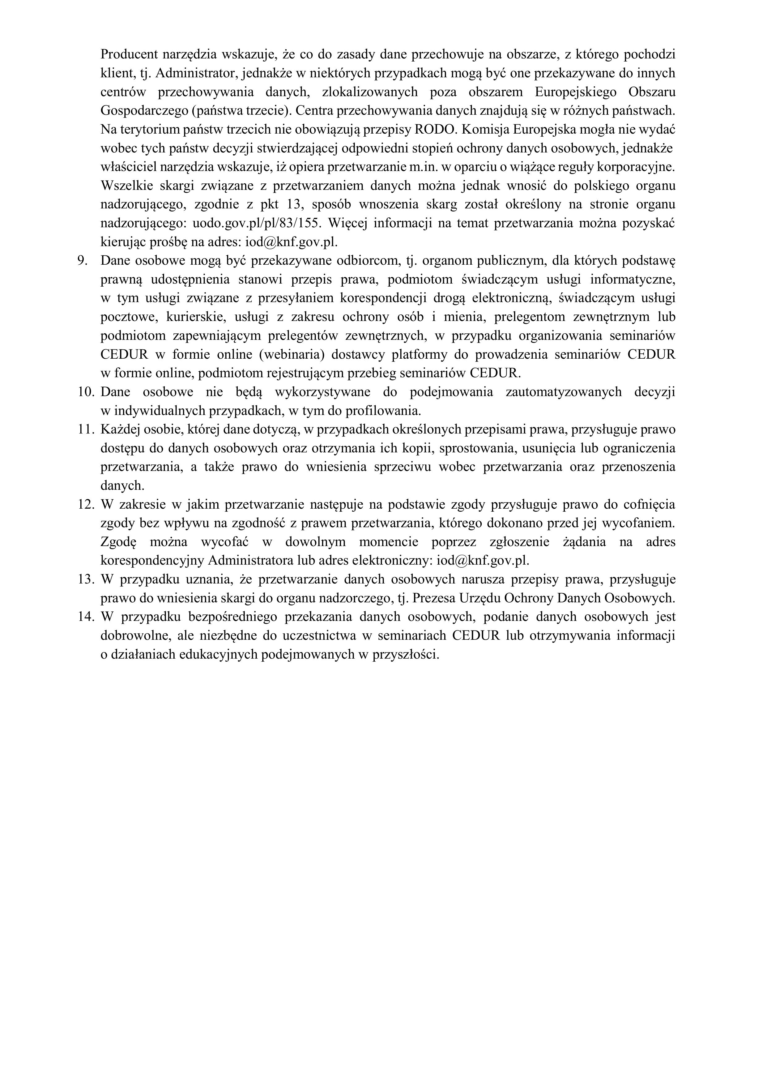 W sprawie webinarium prosimy o kontakt na adres e-mail: cedur@knf.gov.pl podając w temacie wiadomości tytuł i datę wydarzenia.