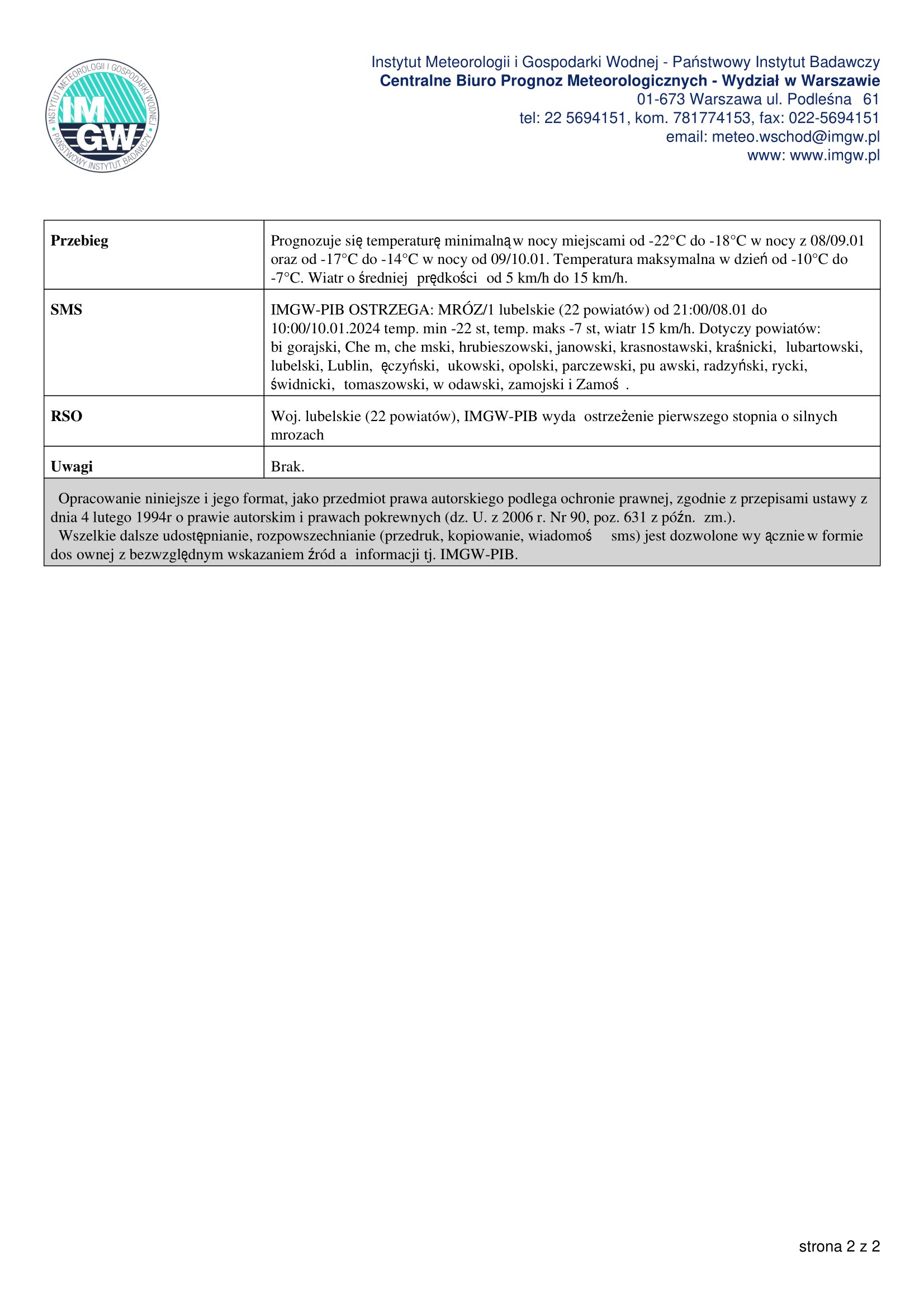 Uwagi: Brak. Ważne: Od: 2024-01-08 21:00 Do: 2024-01-10 10:00