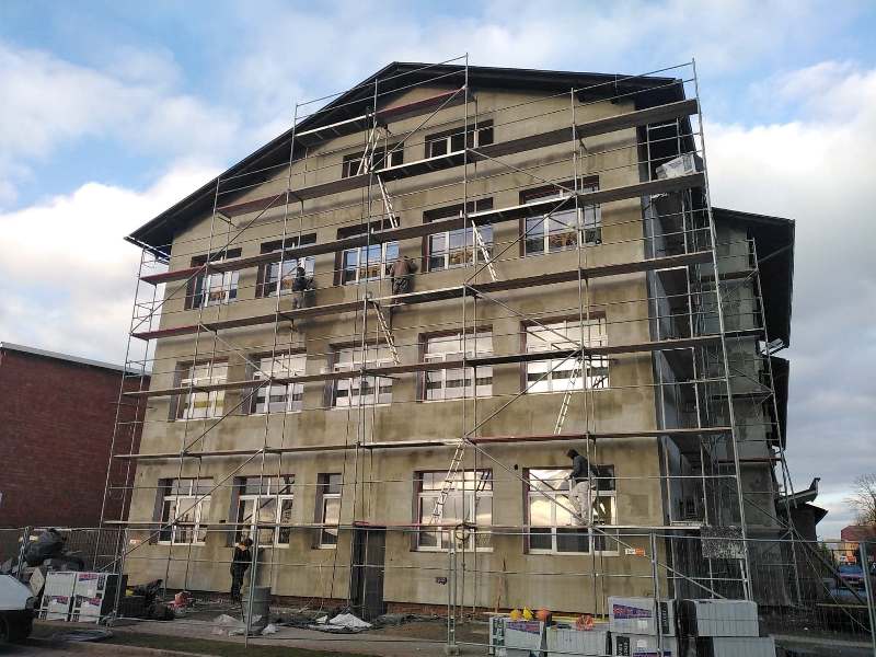 W budynku Zespołu Szkół w Dzwoli zostały wymienione już okna i drzwi oraz instalacja oświetleniowa. W obecnym czasie rozpoczęte są prace związane z dociepleniem ścian budynku.