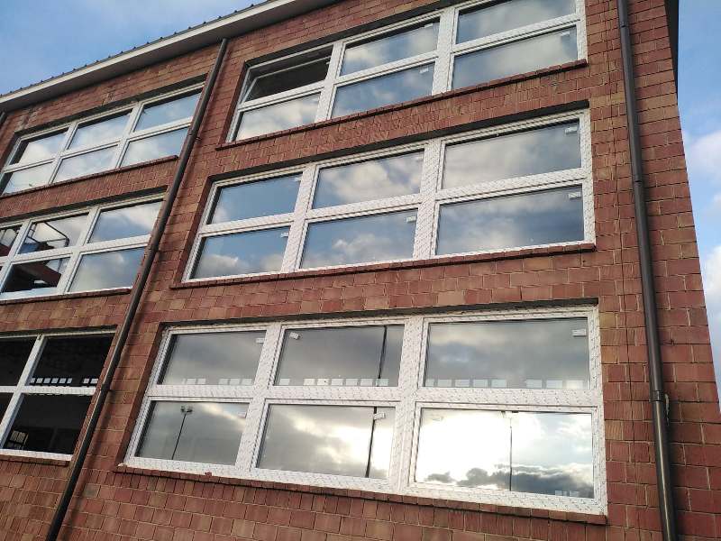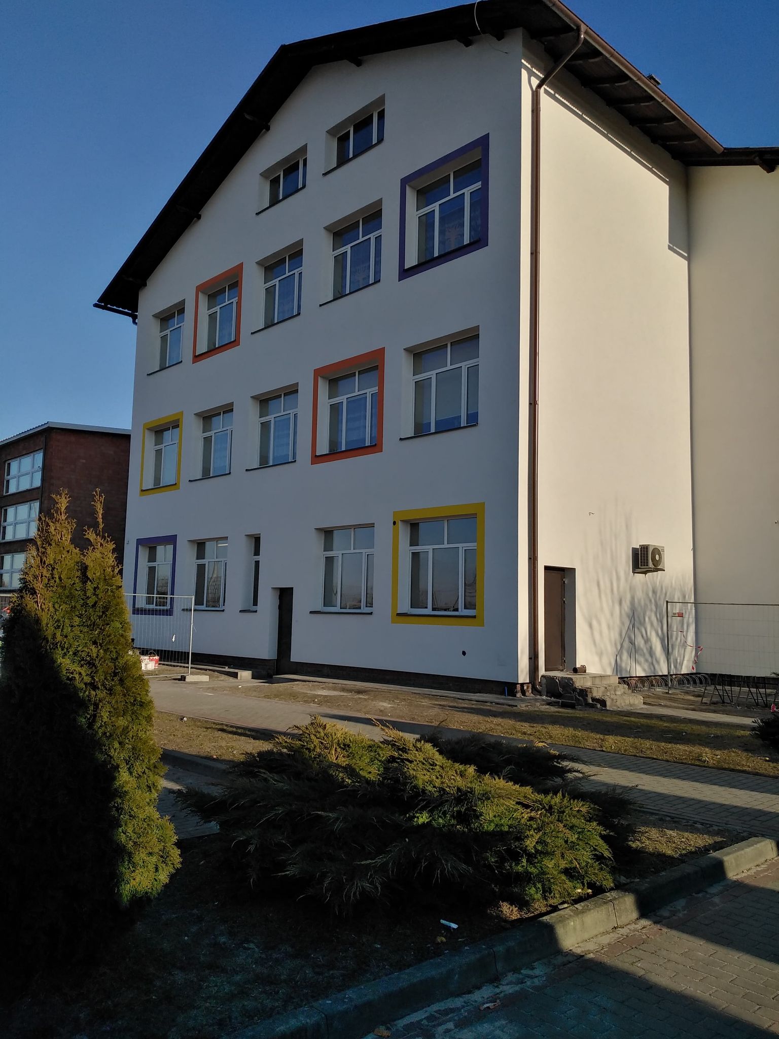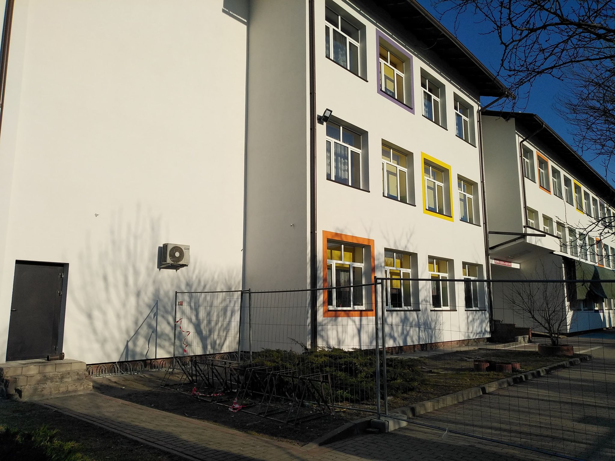 - docieplono styropianem część ścian na budynku szkoły;