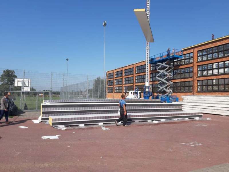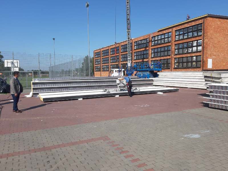 Na miesiąc marzec 2022 r. pozostała do wykonania część elewacji z dociepleniem oraz system wentylacji na sali gimnastycznej. Planowane zakończenie robót to czerwiec 2022 roku.