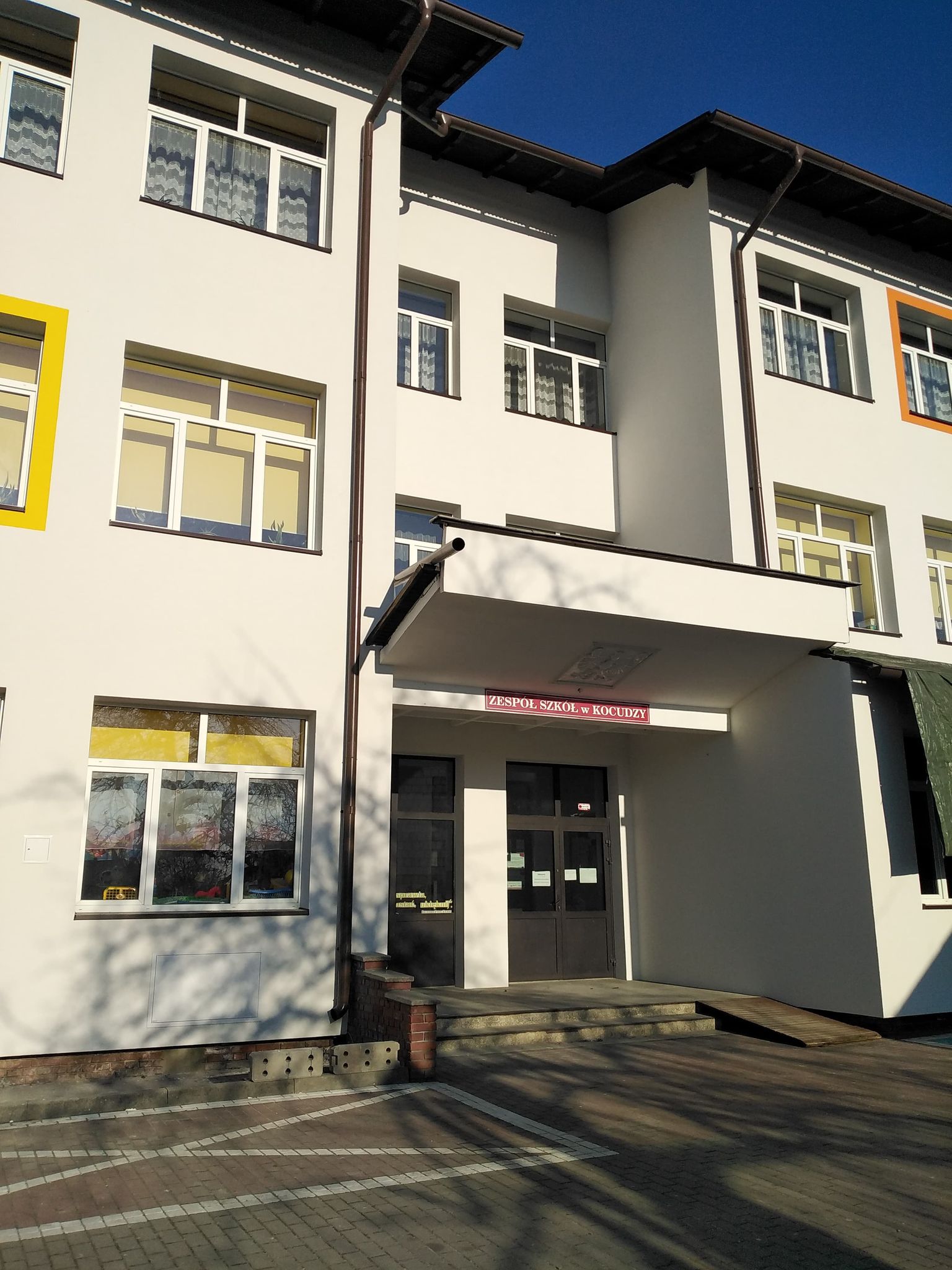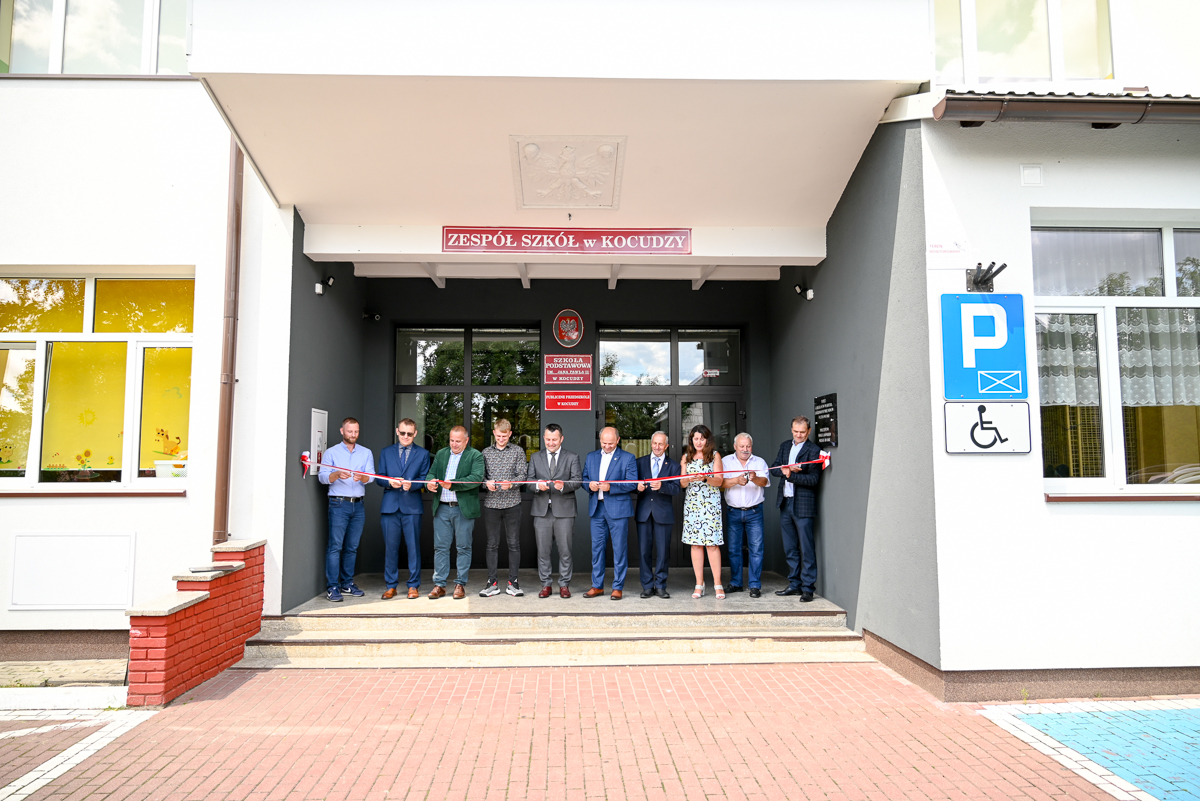 W budynku Zespołu Szkół w Kocudzy natomiast wymieniono pokrycie dachowe na sali gimnastycznej na nowe pokrycie z płyt PIR oraz wykonano niezbędne obróbki blacharskie, wymieniono stolarkę okienną i drzwiową, docieplono strop i poddasze, docieplono styropianem część ścian na budynku szkoły, zamontowano instalację fotowoltaiczną na dachu budynku szkoły. W obecnym czasie trwają prace związane z dociepleniem ścian budynku.