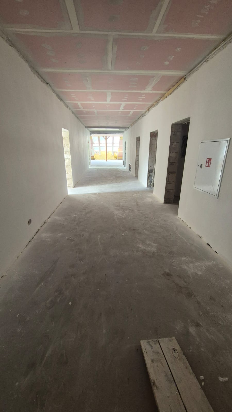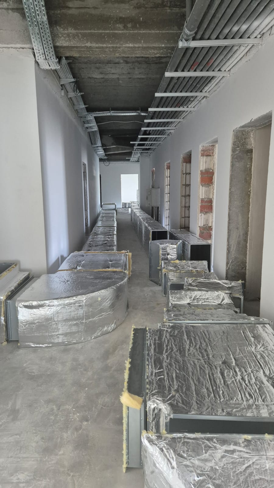 Na dzień dzisiejszy stopień zaawansowania prac jest wysoki, a termin zakończenia prac przy budynku jest nie zagrożony. Wykonano już instalacje elektryczne, wodociągowo-kanalizacyjne, informatyczne. Na całości budynku wykonano również posadzki oraz tynki na ścianach. W obecnym czasie przygotowywane do montażu są instalacje wentylacyjne oraz sufity podwieszane.