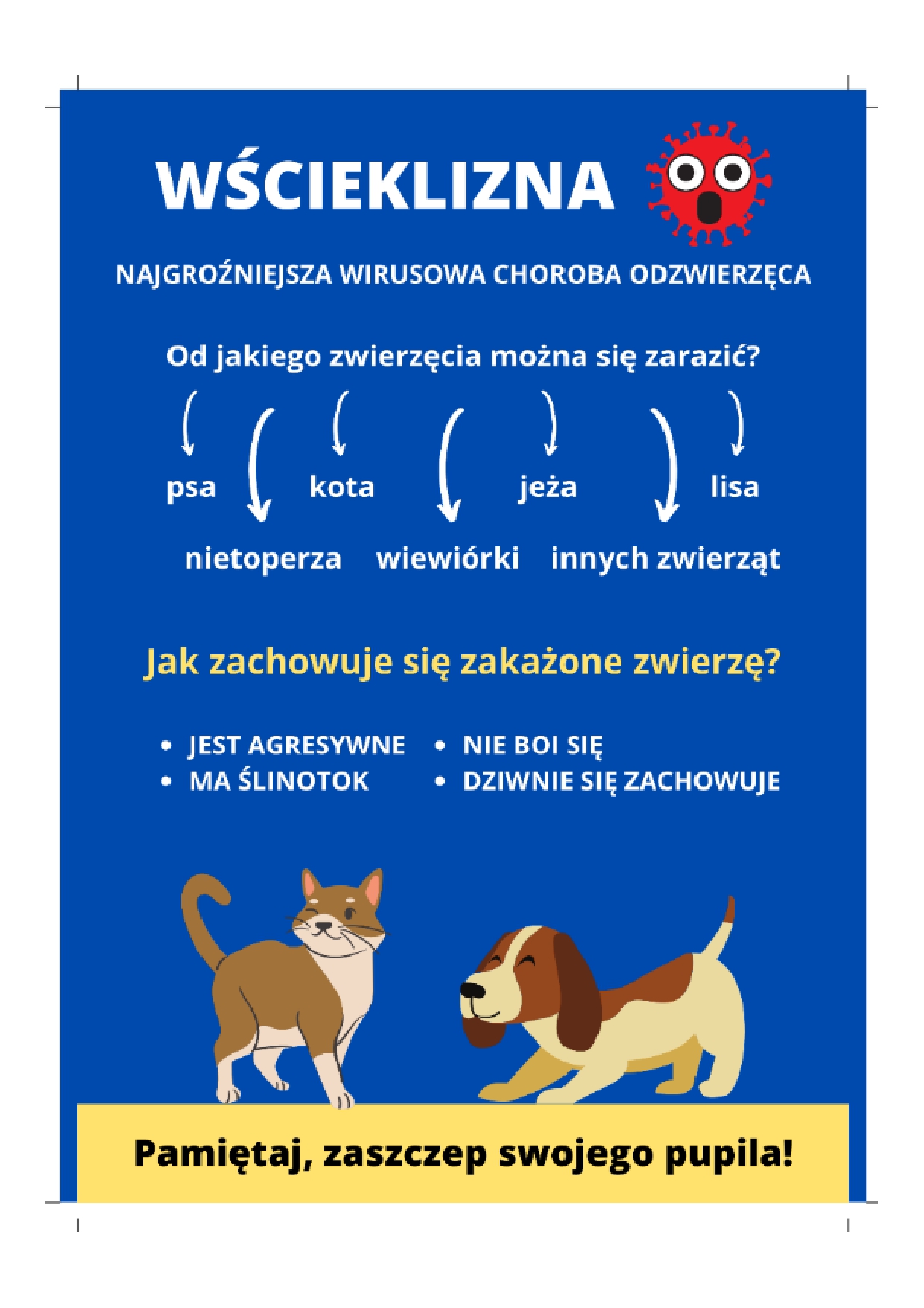 SZCZEPIENIE PSÓW PRZECIWKO WŚCIEKLIŹNIE JEST OBOWIĄZKOWE!