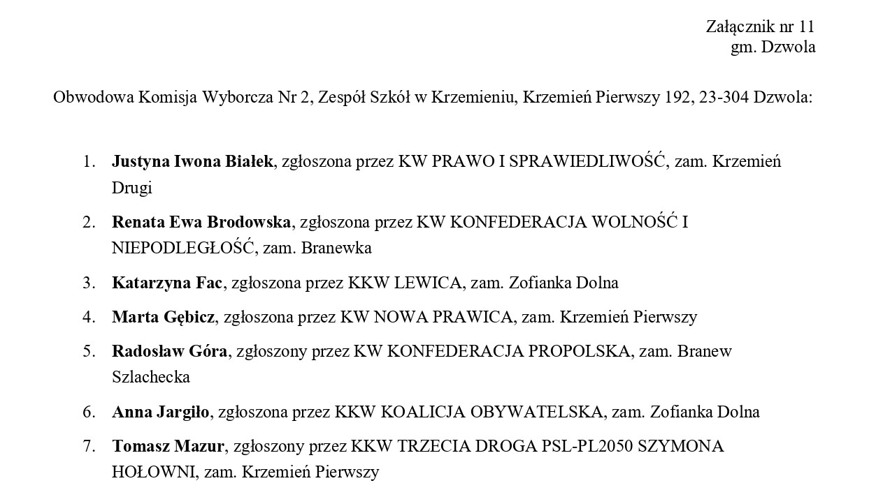 Obwodowe Komisje Wyborcze – gmina Dzwola
