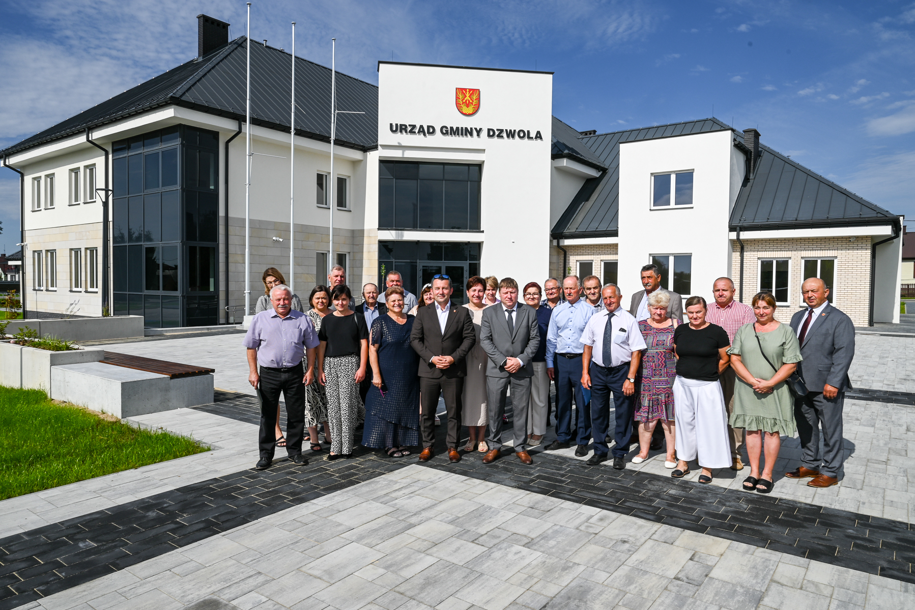 W dniu 8 sierpnia 2025 r. Wójt Gminy Dzwola – Wiesław Dyjach przedstawił Radnym oraz Sołtysom zakres prac, jaki został wykonany w ramach umowy z 24 sierpnia 2023 r., która obejmowała budowę nowej siedziby jednostek organizacyjnych Gminy Dzwola.