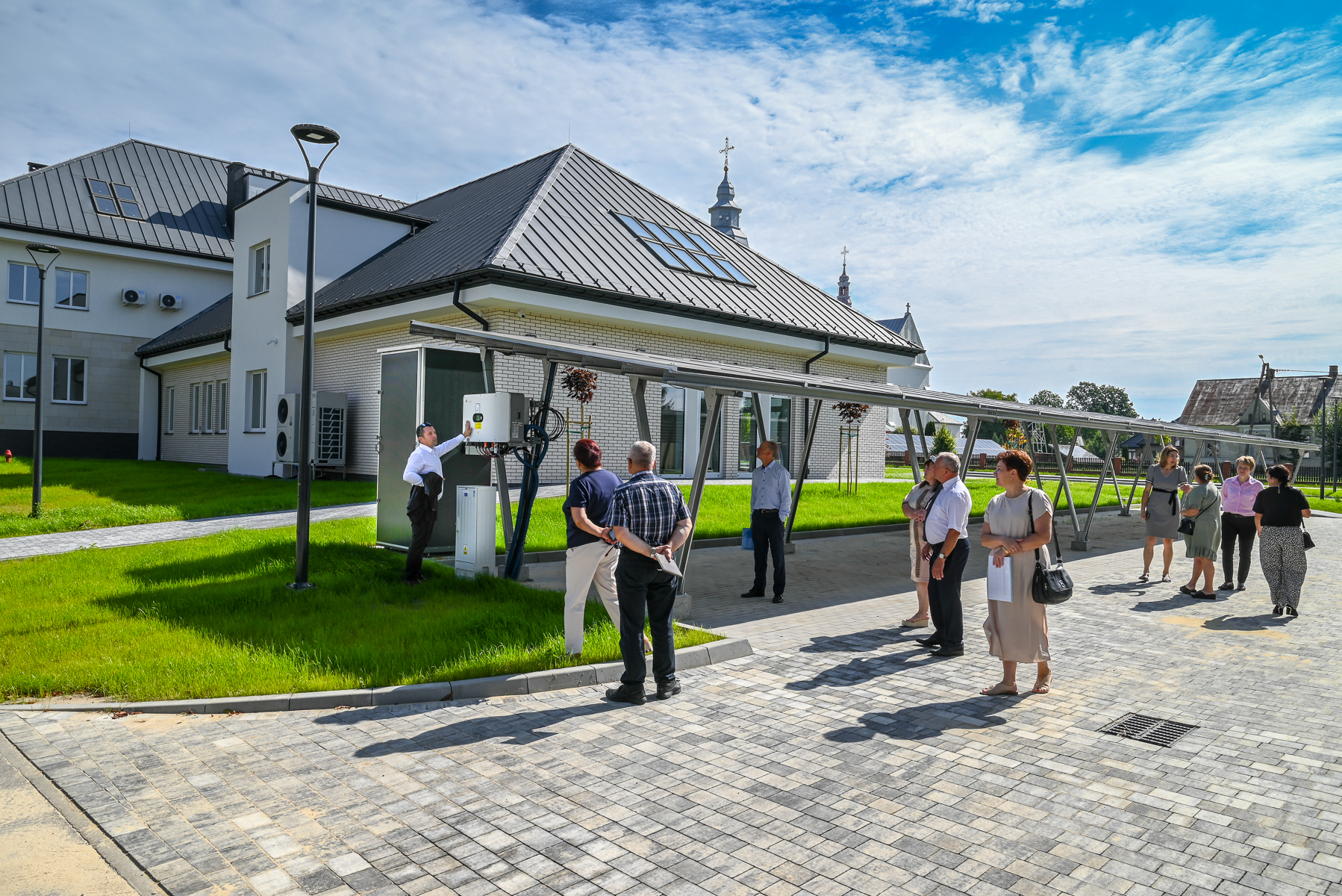 Wójt szczegółowo omówił rozwiązania technologiczne zastosowane w budynku m.in. związane z pozyskiwaniem energii odnawialnej. Radni oraz Sołtysi bardzo pozytywnie ocenili zakres wykonanych prac w ramach zrealizowanej umowy z wykonawcą, którym była firma PHU Rafał Jarosz z Zofianki Górnej.