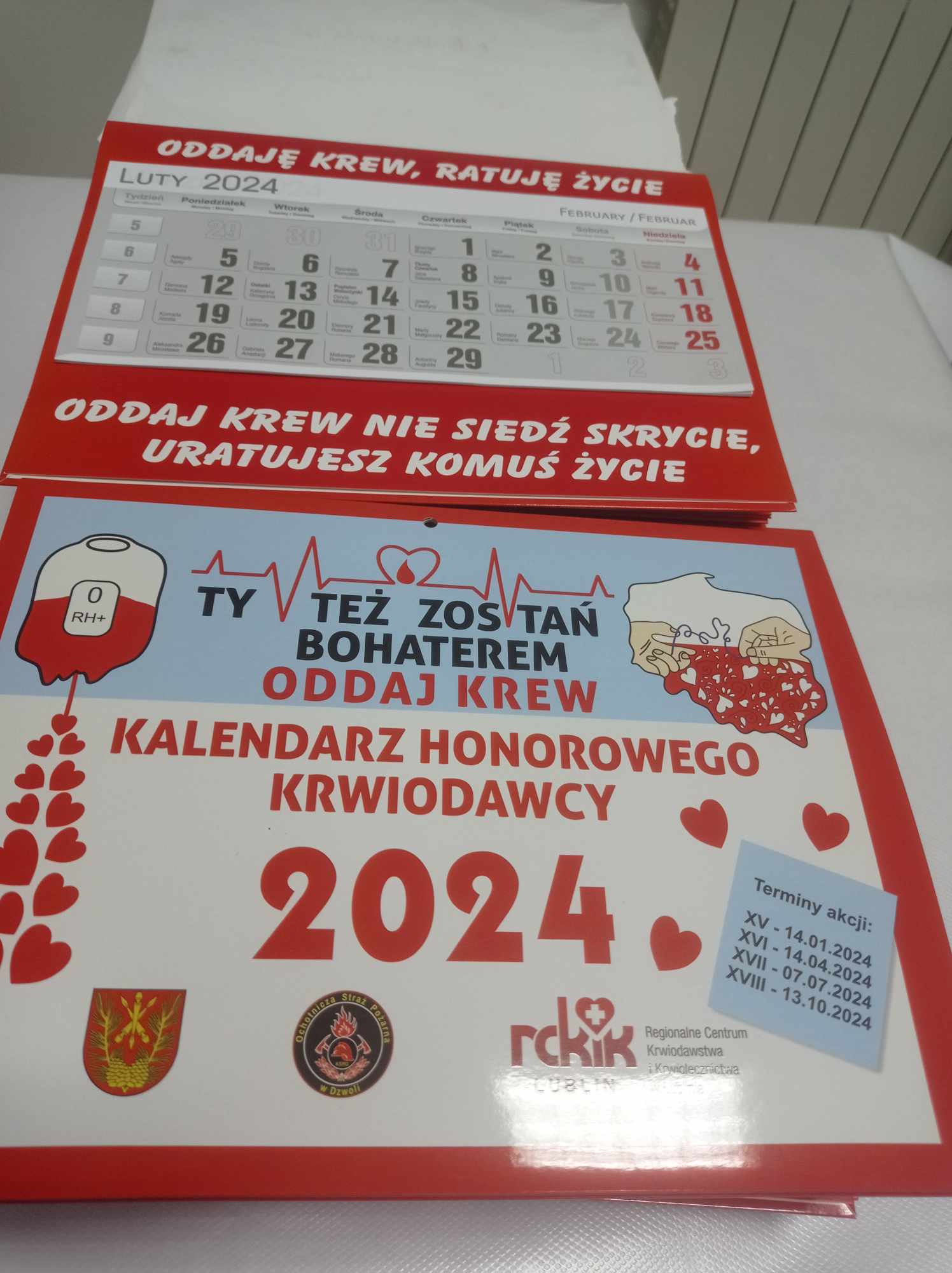 Dziękujemy również Panu Wójtowi naszej gminy, Wiesławowi Dyjachowi, za ufundowane upominki dla każdego krwiodawcy – tym razem były to kalendarze na 2024 rok.