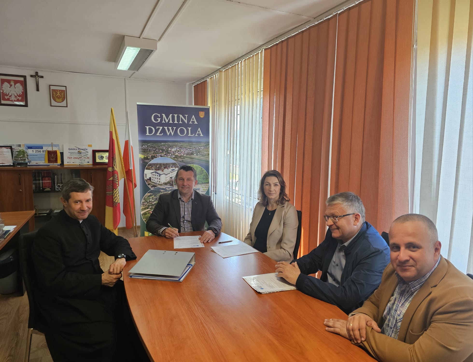 W dniu 30 kwietnia 2024 r. w siedzibie Urzędu Gminy Dzwola, Proboszcz Parafii p.w. Matki Bożej Częstochowskiej w Dzwoli Ks. Mariusz Pyryt podpisał umowę z firmą Waldemar Rycyk KAMIENIARSTWO GRANBUD na wykonanie „Renowacji kościoła p.w. Matki Bożej Częstochowskiej w Dzwoli” wyłonioną w przeprowadzonym zapytaniu ofertowym.