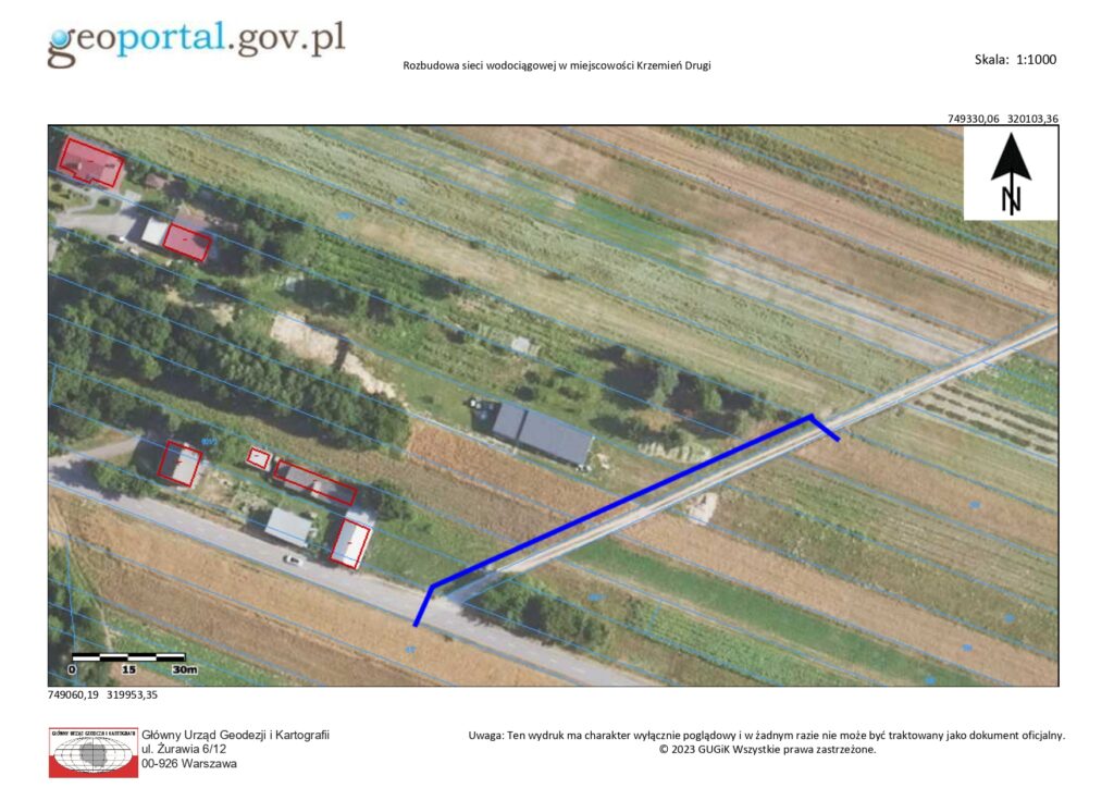 4. Rozbudowa sieci wodociągowej w miejscowości Krzemień Drugi (przy drodze gminnej nr 108997L prowadzącej na Konstantów w kierunku nowych zabudowań).