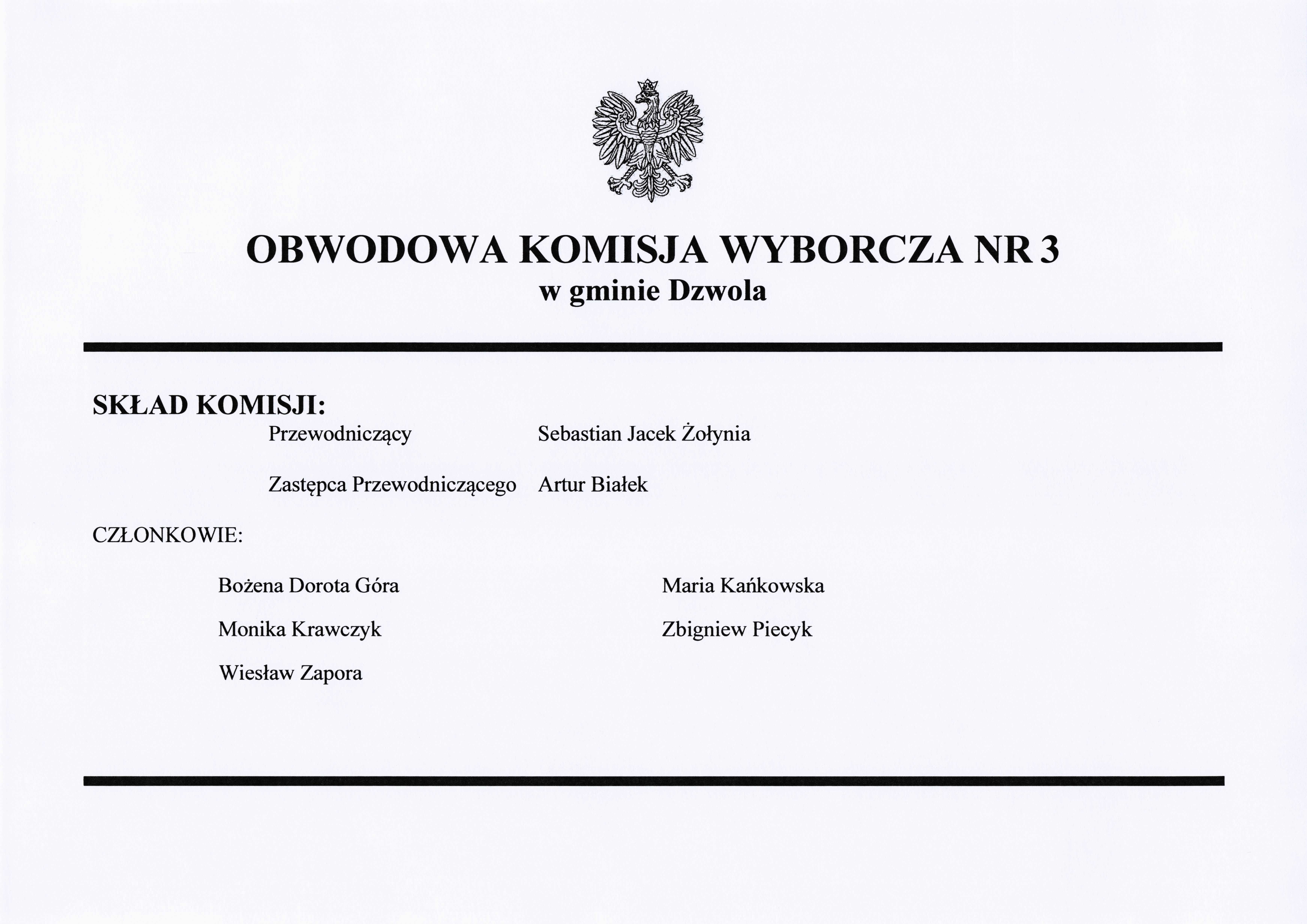 Pierwsze posiedzenia Obwodowych Komisji Wyborczych od nr 1 do nr 8 w Gminie Dzwola odbyły się w dniach 20-21 marca 2024 r. Komisje dokonały wyboru Przewodniczącego Komisji i jego Zastępcy. Komisje ustaliły sposób wykonywania swoich zadań. Poniżej Komisje podają informacje o swoim składzie z uwzględnieniem pełnionych funkcji.