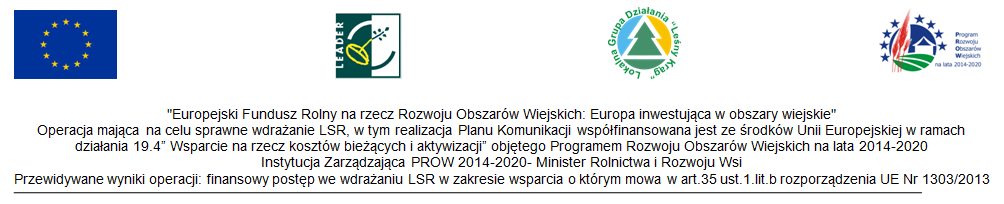 Instytucja Zarządzająca PROW 2014-2020 – Minister Rolnictwa i Rozwoju Wsi. Operacja współfinansowana ze środków Unii Europejskiej w ramach poddziałania 19.3 „Przygotowanie i realizacja działań w zakresie współpracy z lokalną grupą działania” objętego Programem Rozwoju Obszarów Wiejskich na lata 2014-2020.