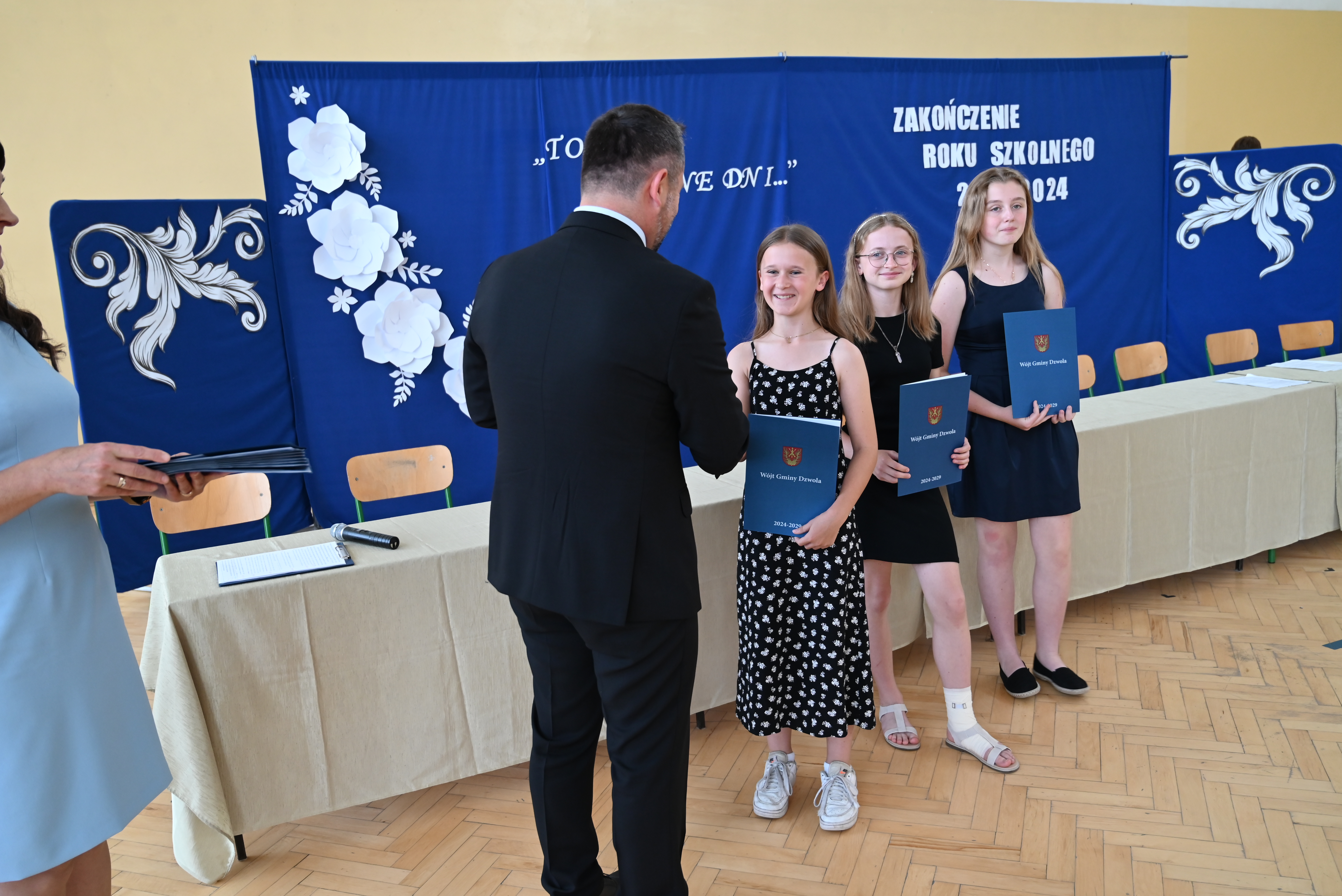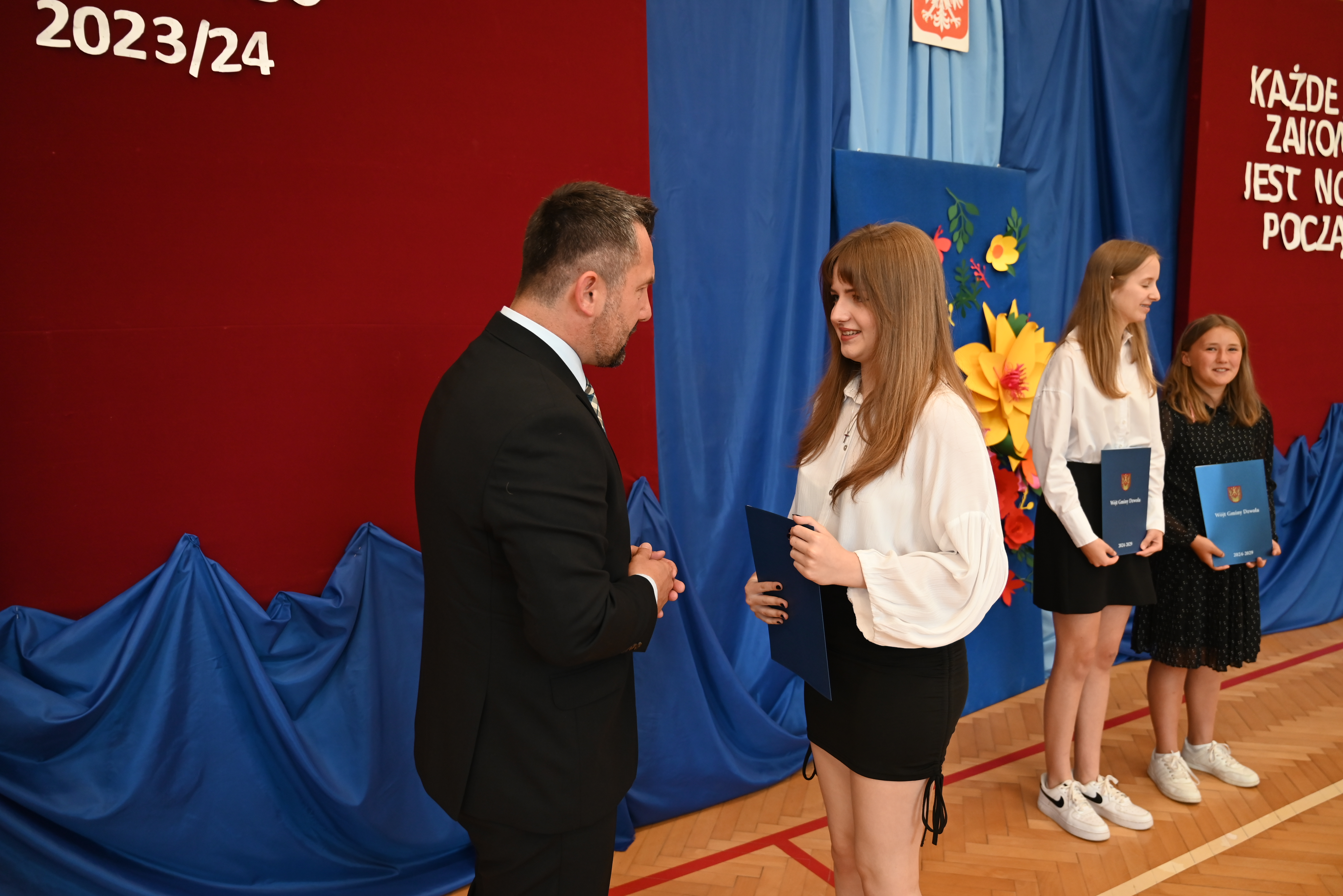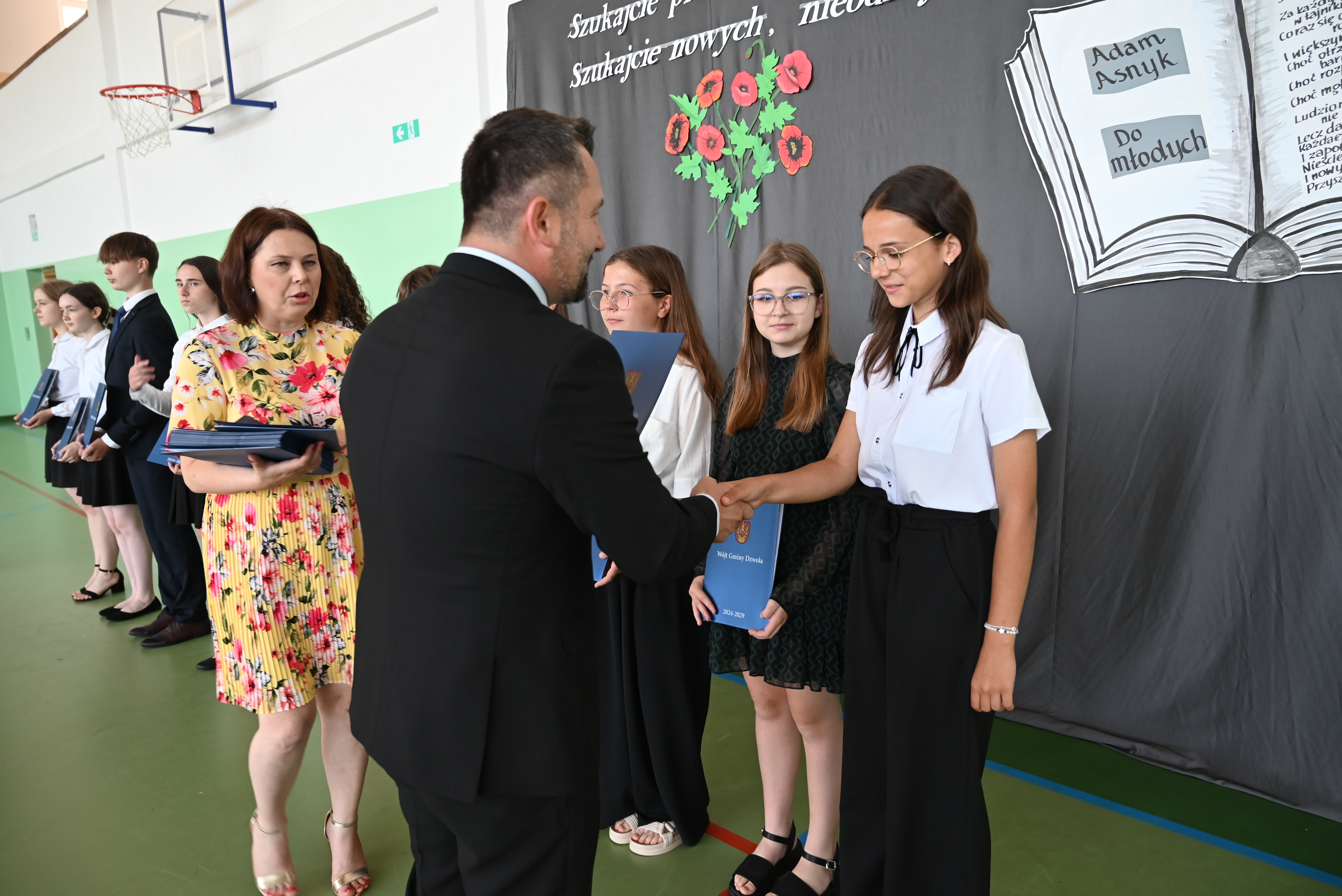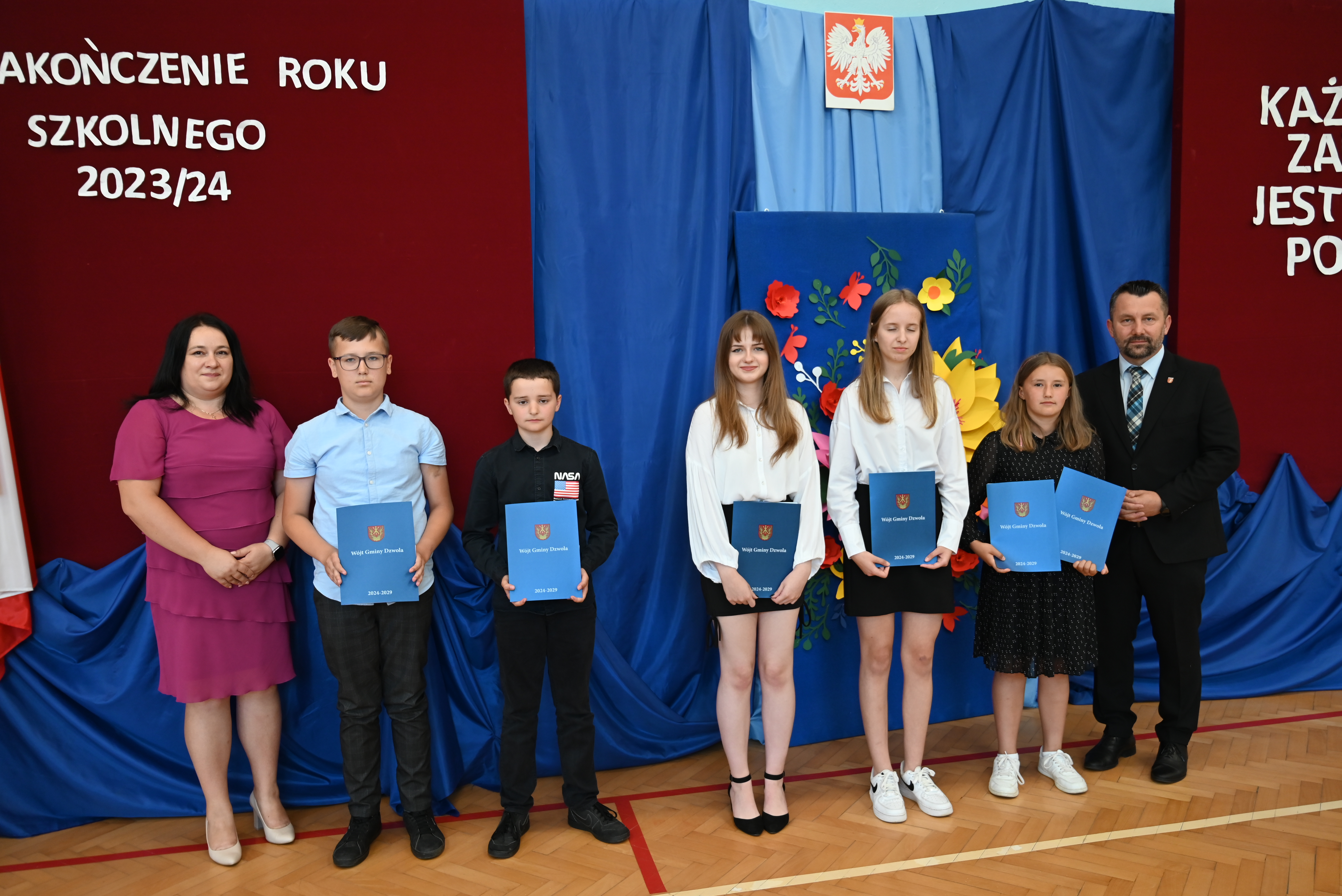 Uroczyste rozdanie stypendiów i nagród odbyło się 21 czerwca 2024 roku, w dniu wydania świadectw na zakończenie roku szkolnego. Wiesław Dyjach – Wójt Gminy Dzwola, osobiście wręczył stypendia i nagrody wszystkim wyróżnionym uczniom, uczęszczającym do szkół w naszej Gminie.