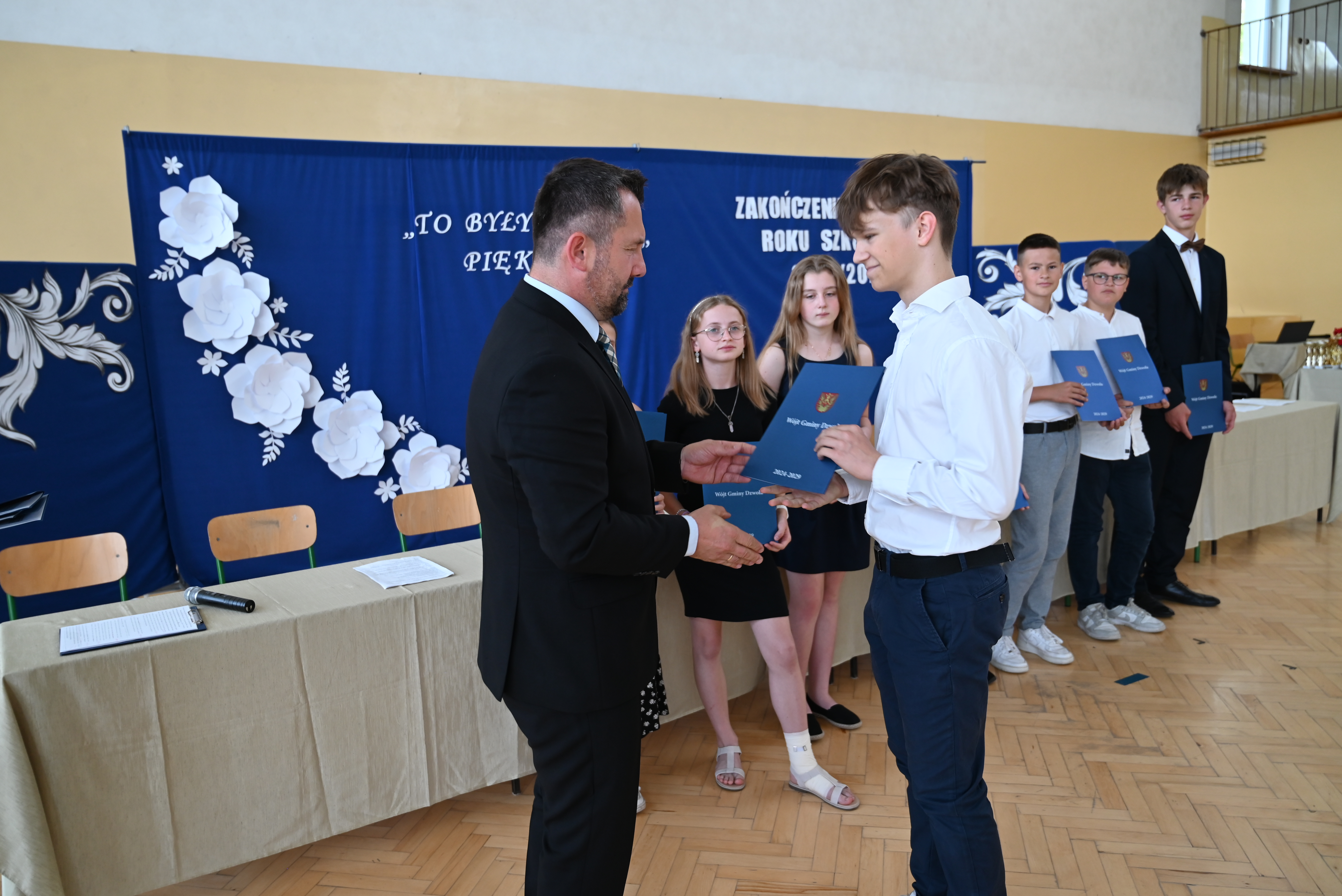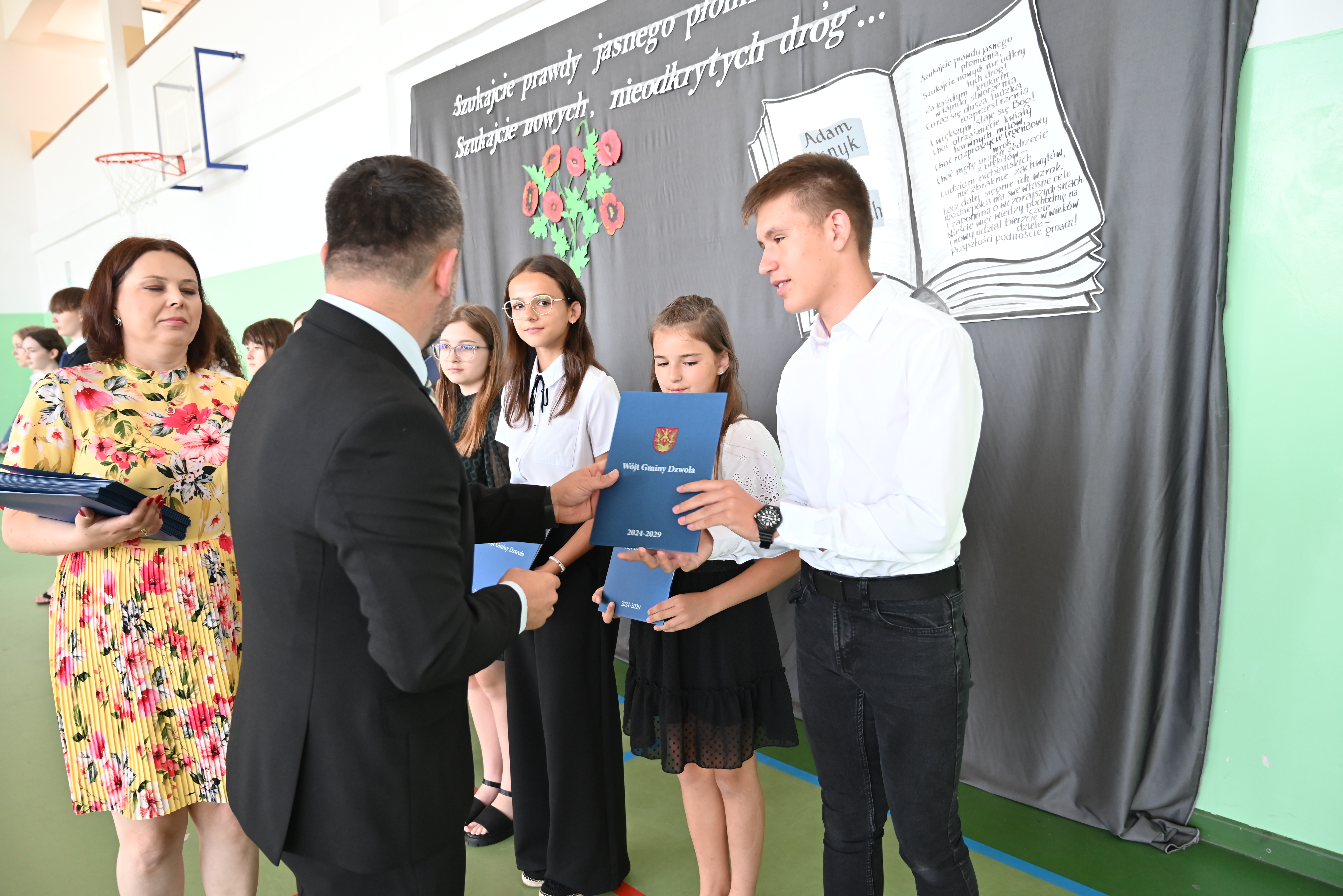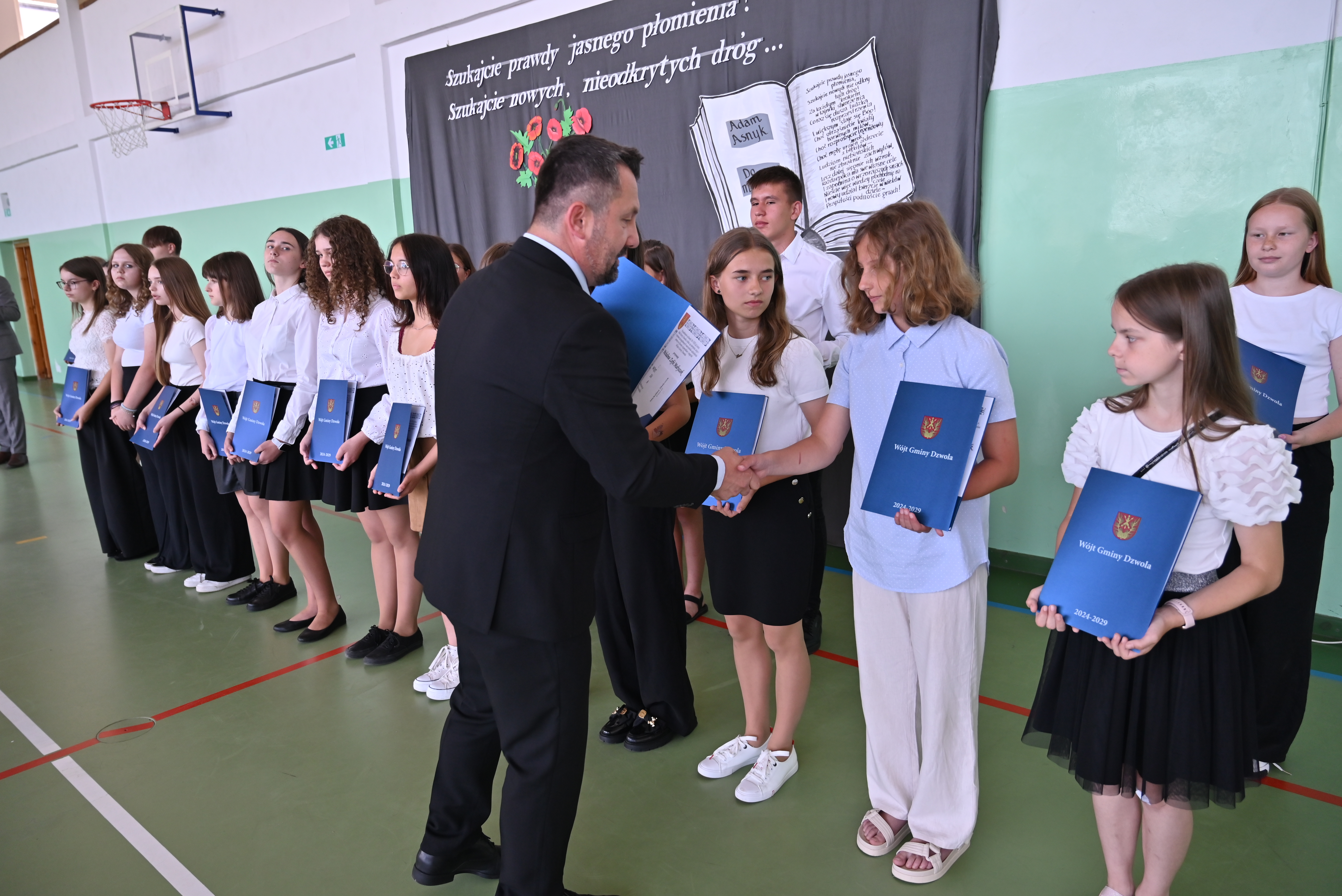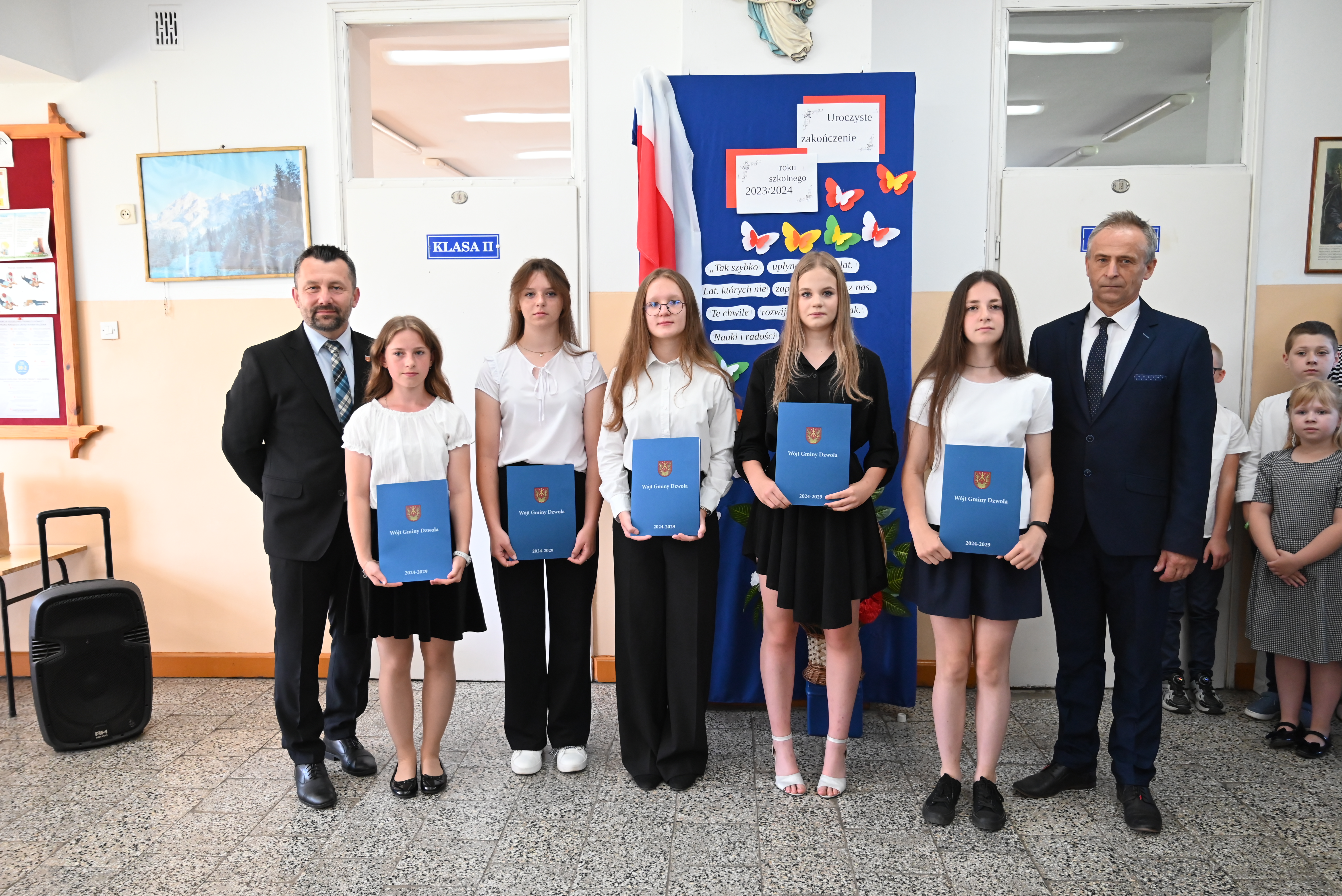 Uroczyste rozdanie stypendiów i nagród odbyło się 21 czerwca 2024 roku, w dniu wydania świadectw na zakończenie roku szkolnego. Wiesław Dyjach – Wójt Gminy Dzwola, osobiście wręczył stypendia i nagrody wszystkim wyróżnionym uczniom, uczęszczającym do szkół w naszej Gminie.