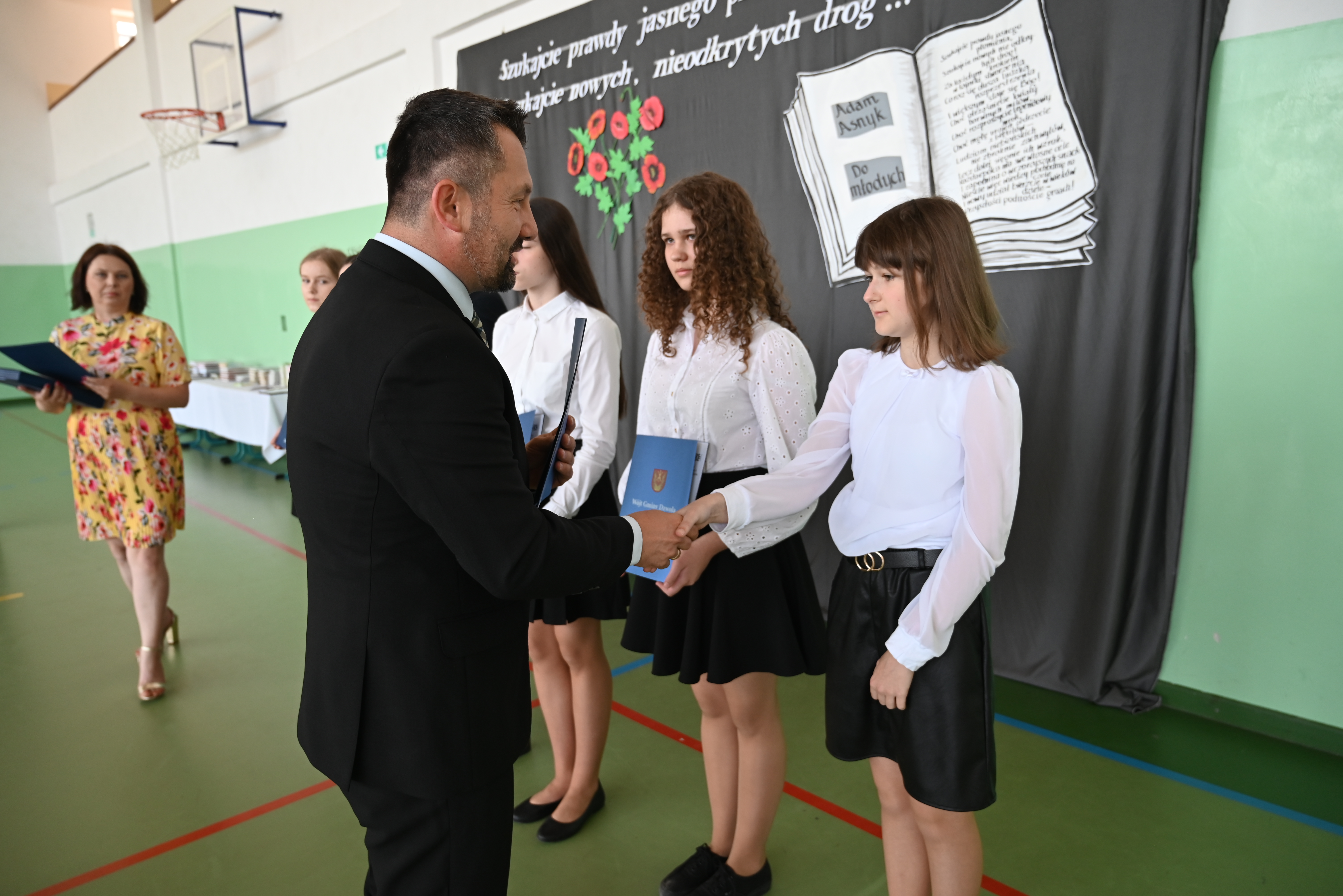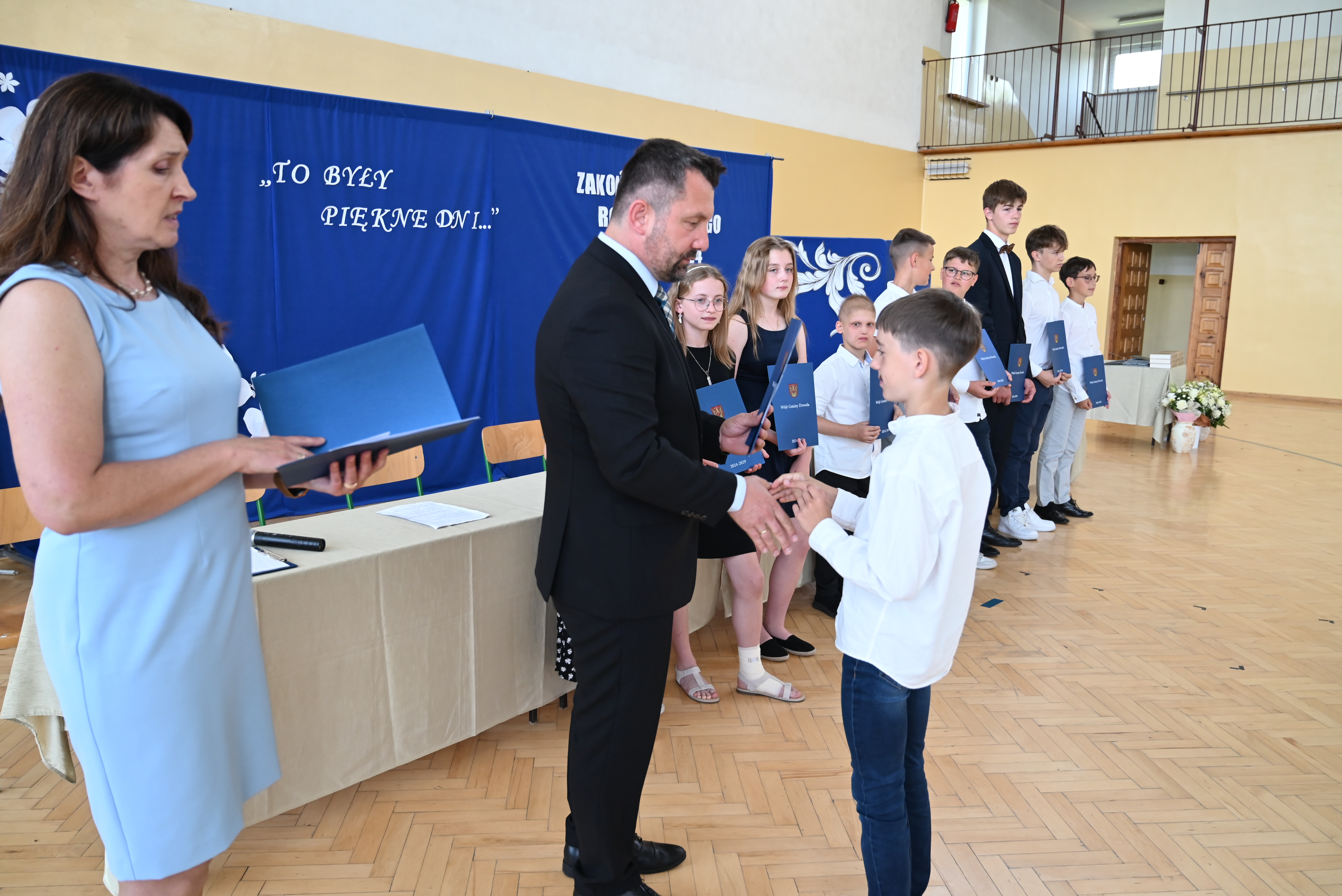 Dyrektorom i nauczycielom oraz wszystkim pracownikom szkół dziękujemy za współpracę oraz zaangażowanie w proces kształcenia i wychowania uczniów, za rzetelność i wysiłek wkładany w realizację wszystkich edukacyjnych i wychowawczych zadań. Rodzicom dziękujemy, że mimo codziennych obowiązków chcieli Państwo współpracować ze szkołami w tworzeniu jak najlepszych warunków do nauki i wychowania oraz za wsparcie i pracę podejmowaną dla dobra dziecka. Absolwentom szkół podstawowych życzymy powodzenia na kolejnym etapie nauki, a wszystkim uczniom życzymy ciekawych, beztroskich, bezpiecznych i pod każdym względem udanych wakacji.