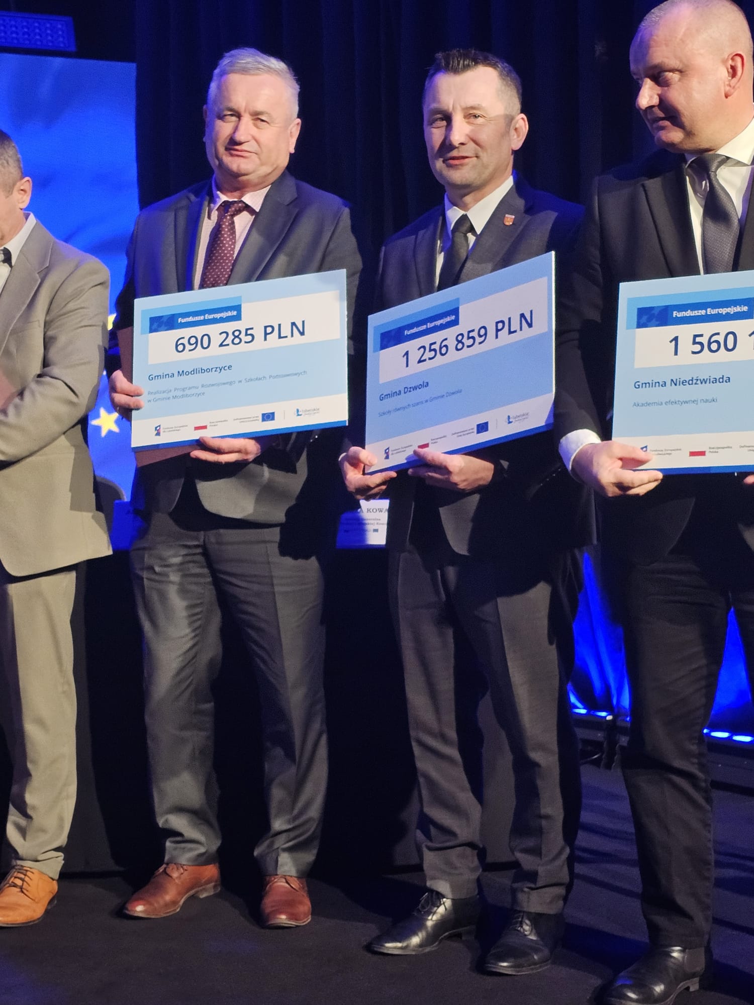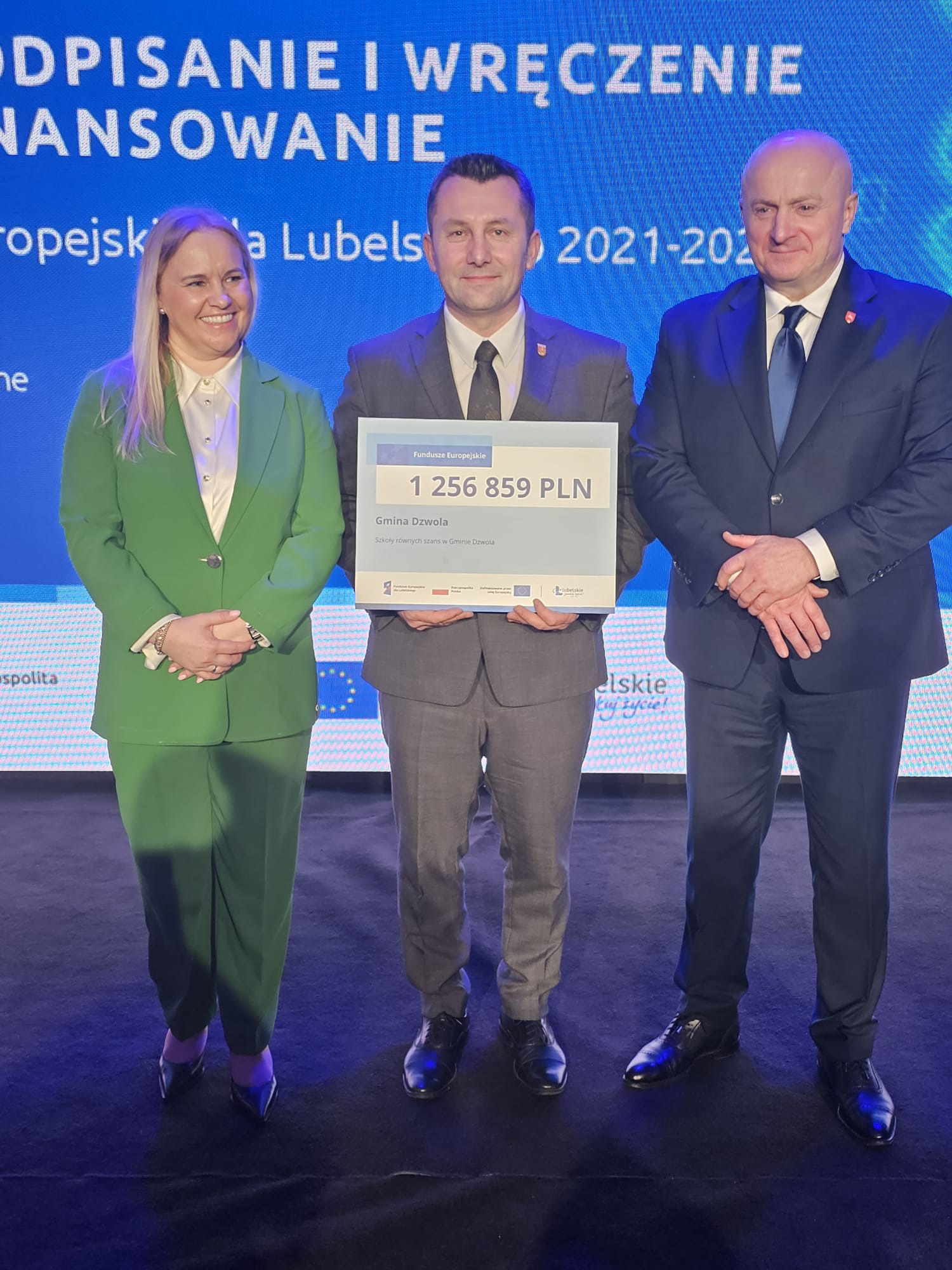 Marszałek Województwa Lubelskiego Jarosław Stawiarski wraz z Podsekretarz Stanu w Ministerstwie Funduszy i Polityki Regionalnej Moniką Sikorą oraz przedstawicielką Komisji Europejskiej Aleksandrą Kowalską wręczyli Wójtowi Gminy Dzwola w dniu 20.02.2024 r. symboliczny czek oraz umowę o dofinansowanie projektu na uroczystej konferencji, która miała miejsce w Urzędzie Marszałkowskim Województwa Lubelskiego w Lublinie.