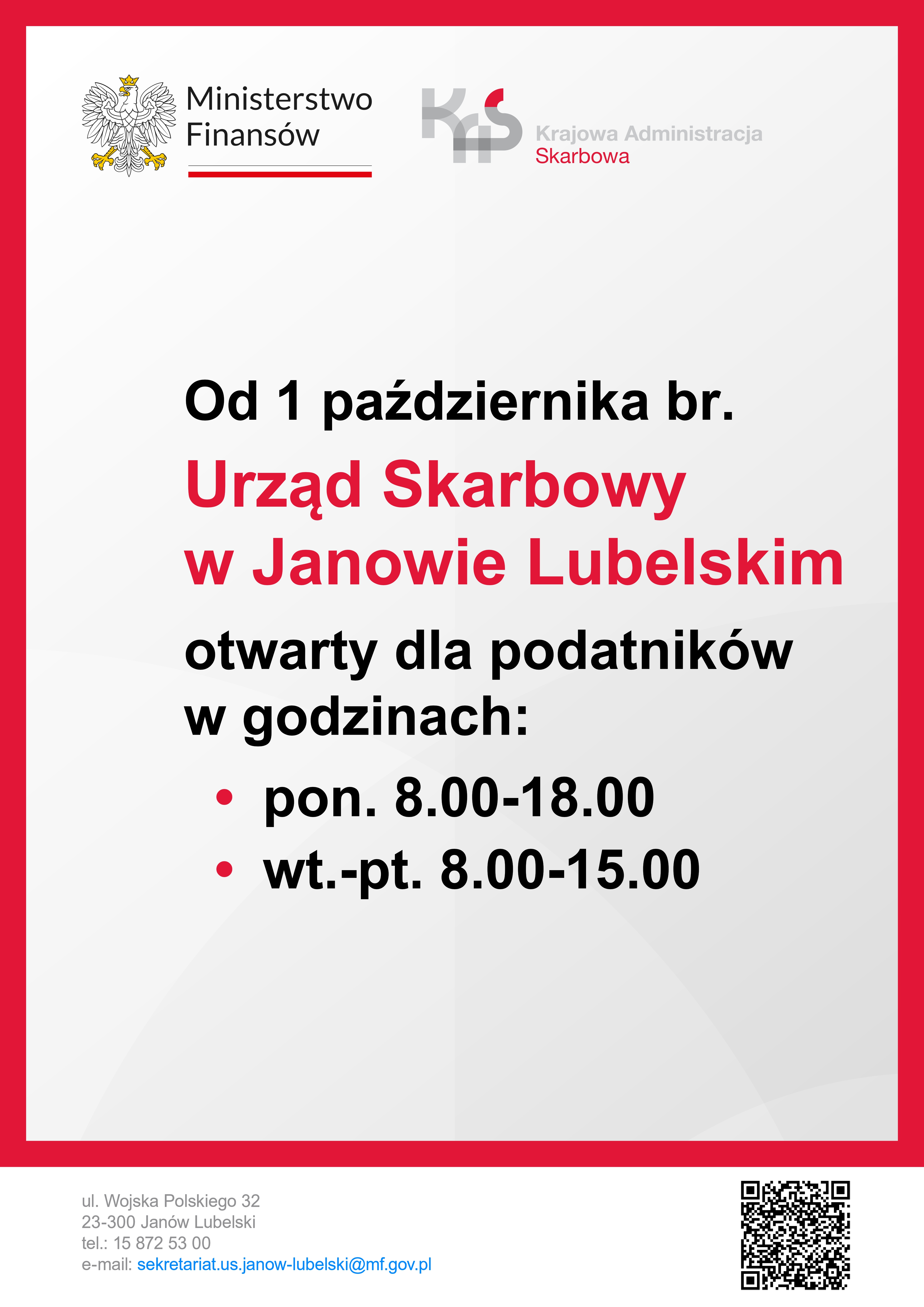 Urząd Skarbowy w Janowie Lubelskim – Informacja dla mieszkańców Opublikowano dnia: 25 września 2024 - 07:27
