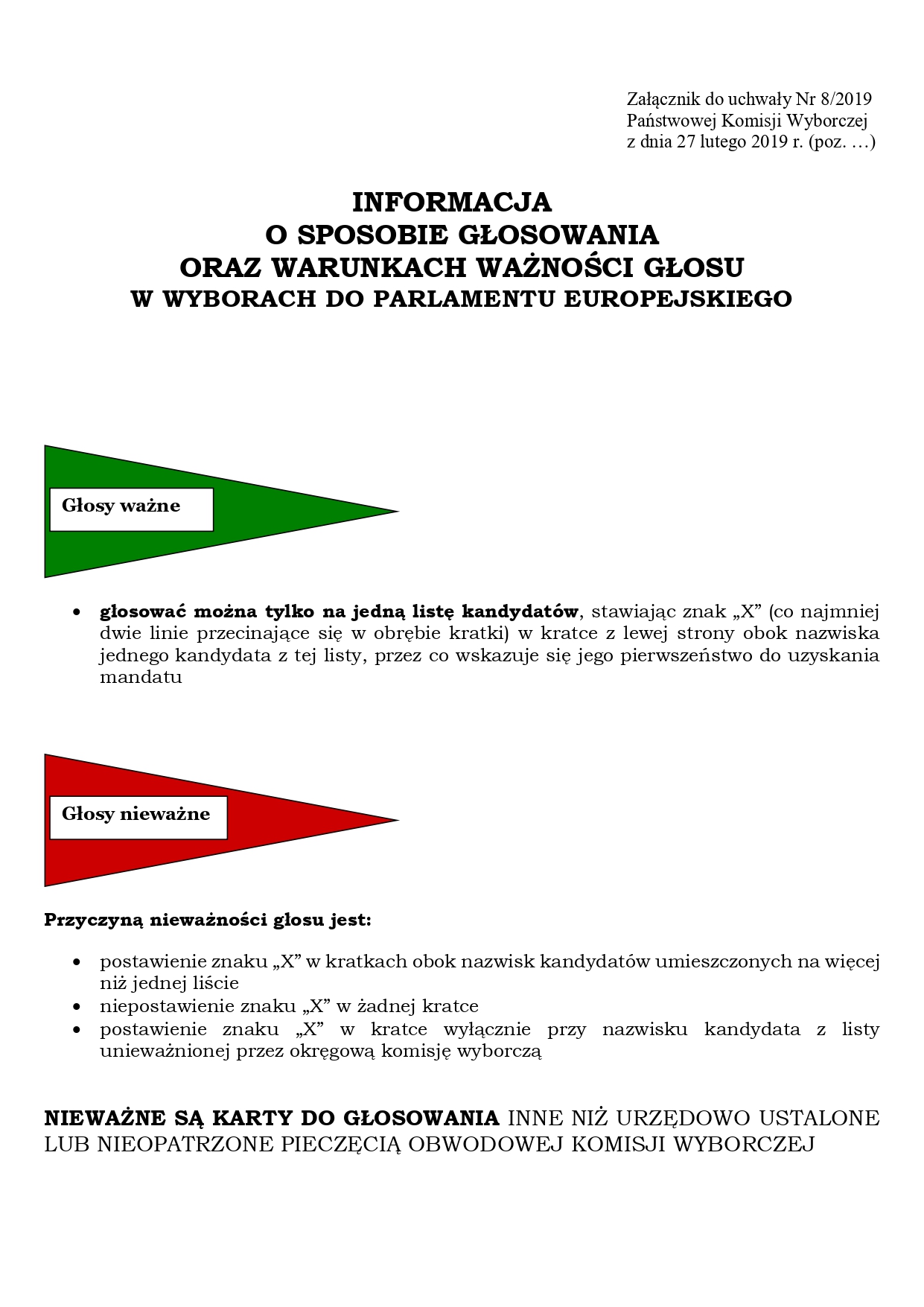 W lokalach wyborczych otrzymacie Państwo 1 kartę do głosowania z listami kandydatów do Parlamentu Europejskiego.