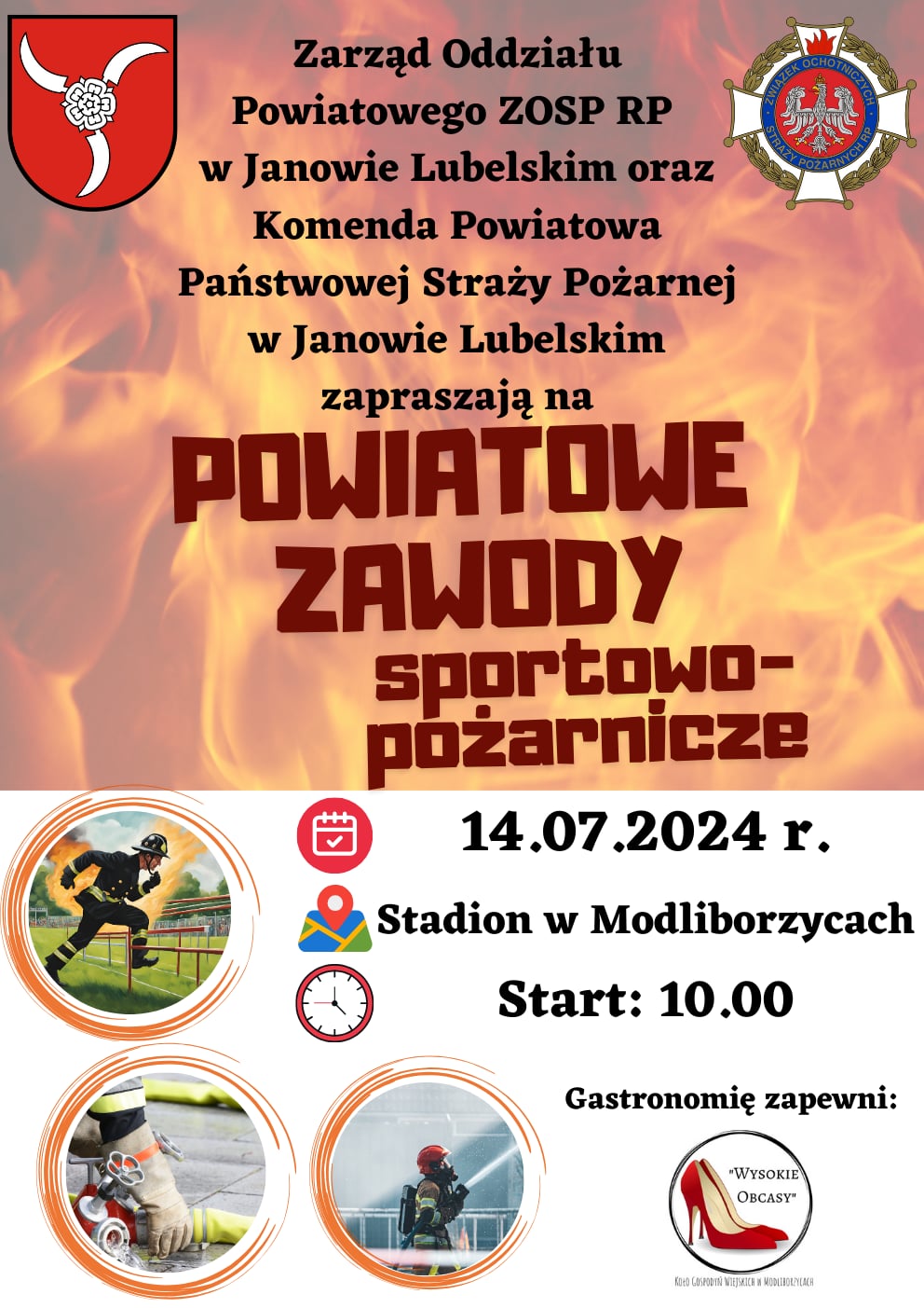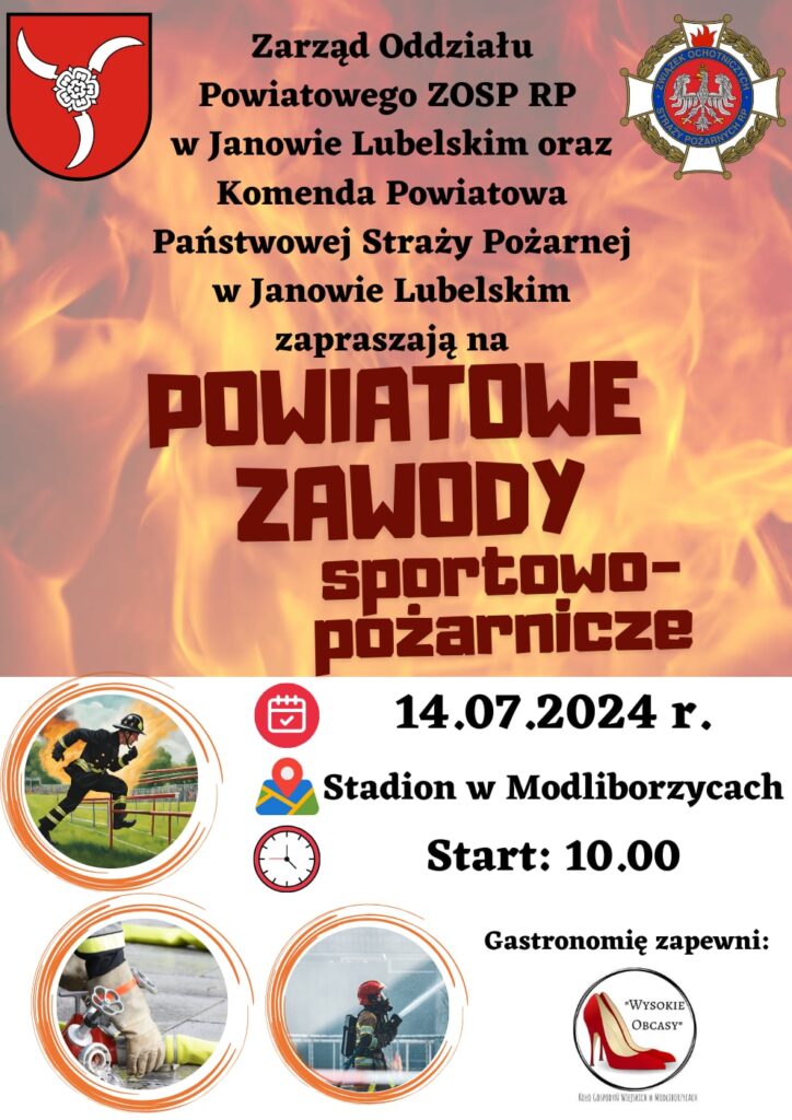 Zaproszenie na Powiatowe Zawody Sportowo-Pożarnicze OSP Opublikowano dnia: 10 lipca 2024 - 07:55 Zaproszenie na Powiatowe Zawody Sportowo-Pożarnicze OSP w grupach A i C.