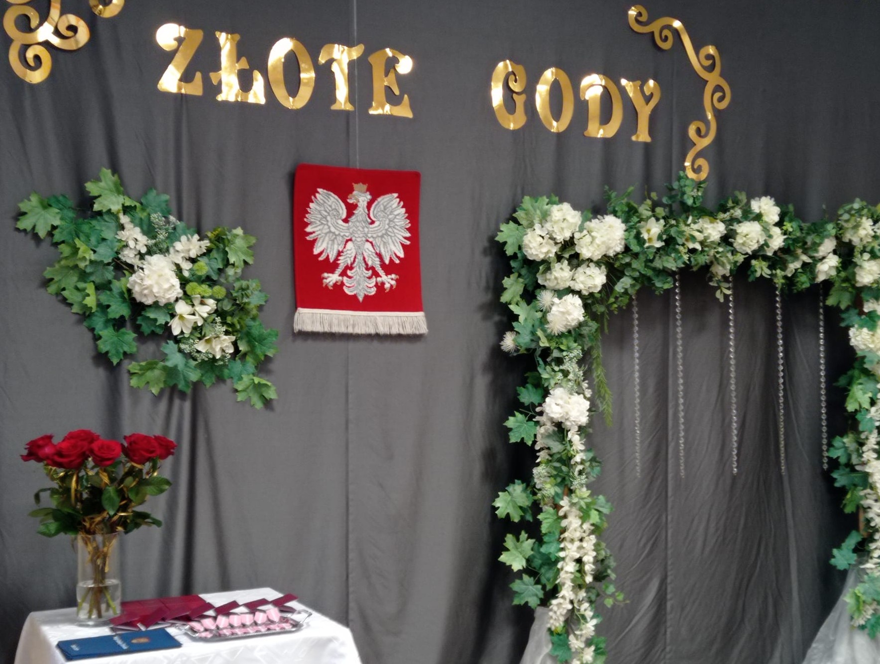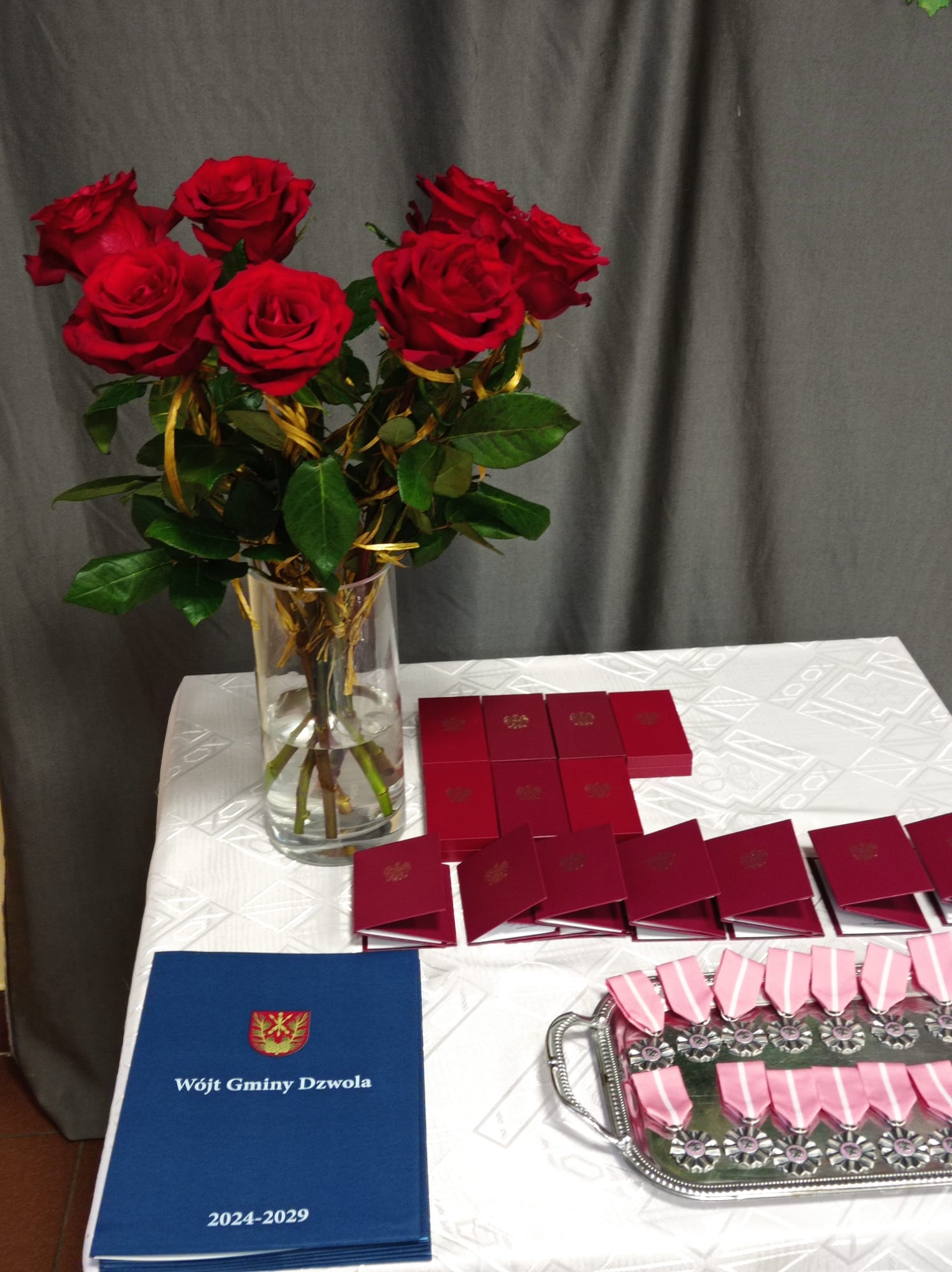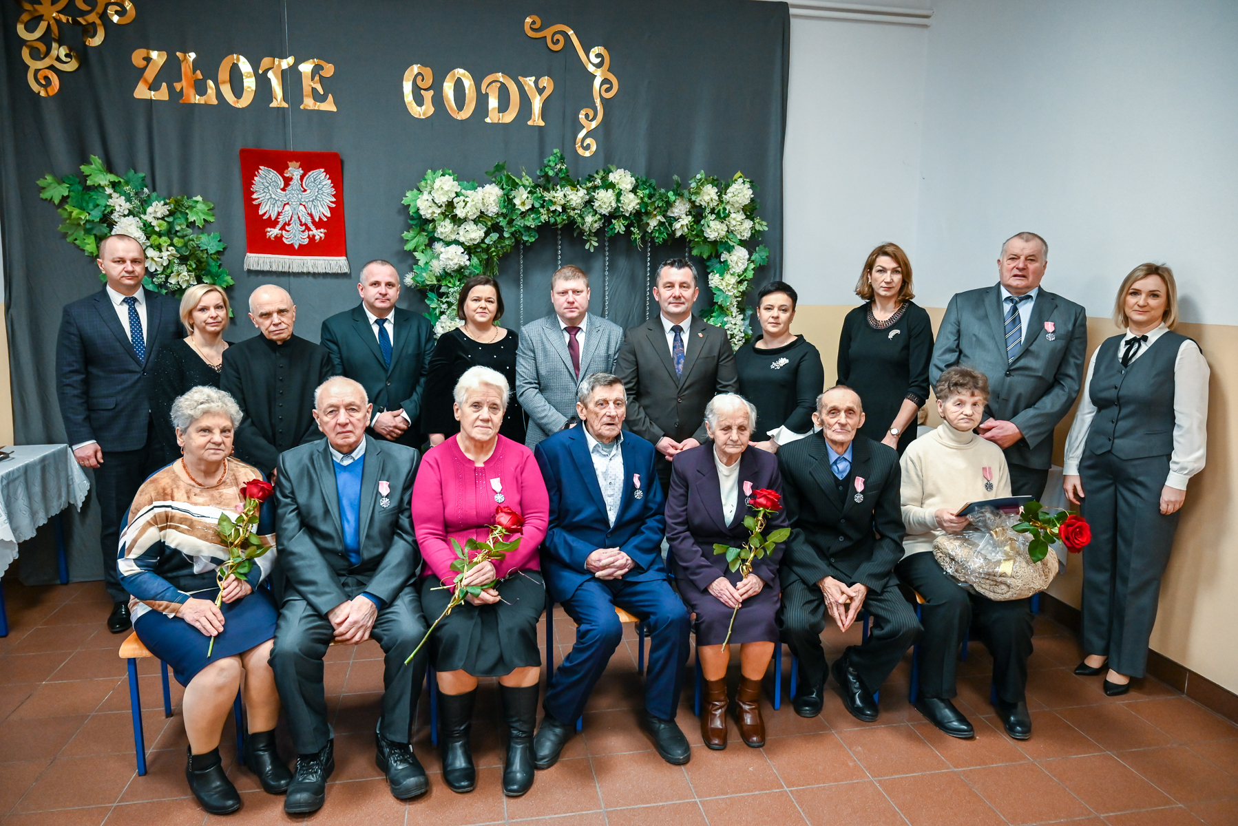 Wójt Gminy Dzwola Wiesław Dyjach wraz z Kierownik USC Ewą Grzywna przywitali Jubilatów oraz przybyłych gości. Następnie Wójt Gminy Dzwola w imieniu Prezydenta Rzeczypospolitej Polskiej Andrzeja Dudy dokonał aktu dekoracji medalami za Długie Pożycie Małżeńskie. Po tej ceremonii złożono gratulacje oraz najserdeczniejsze życzenia parom obchodzącym Złote Gody. Jubilaci otrzymali również dyplomy okolicznościowe, kwiaty i upominki wręczone przez Wójta Gminy. Zwieńczeniem uroczystości Złotych Godów było wspólne, pamiątkowe zdjęcie oraz poczęstunek.
