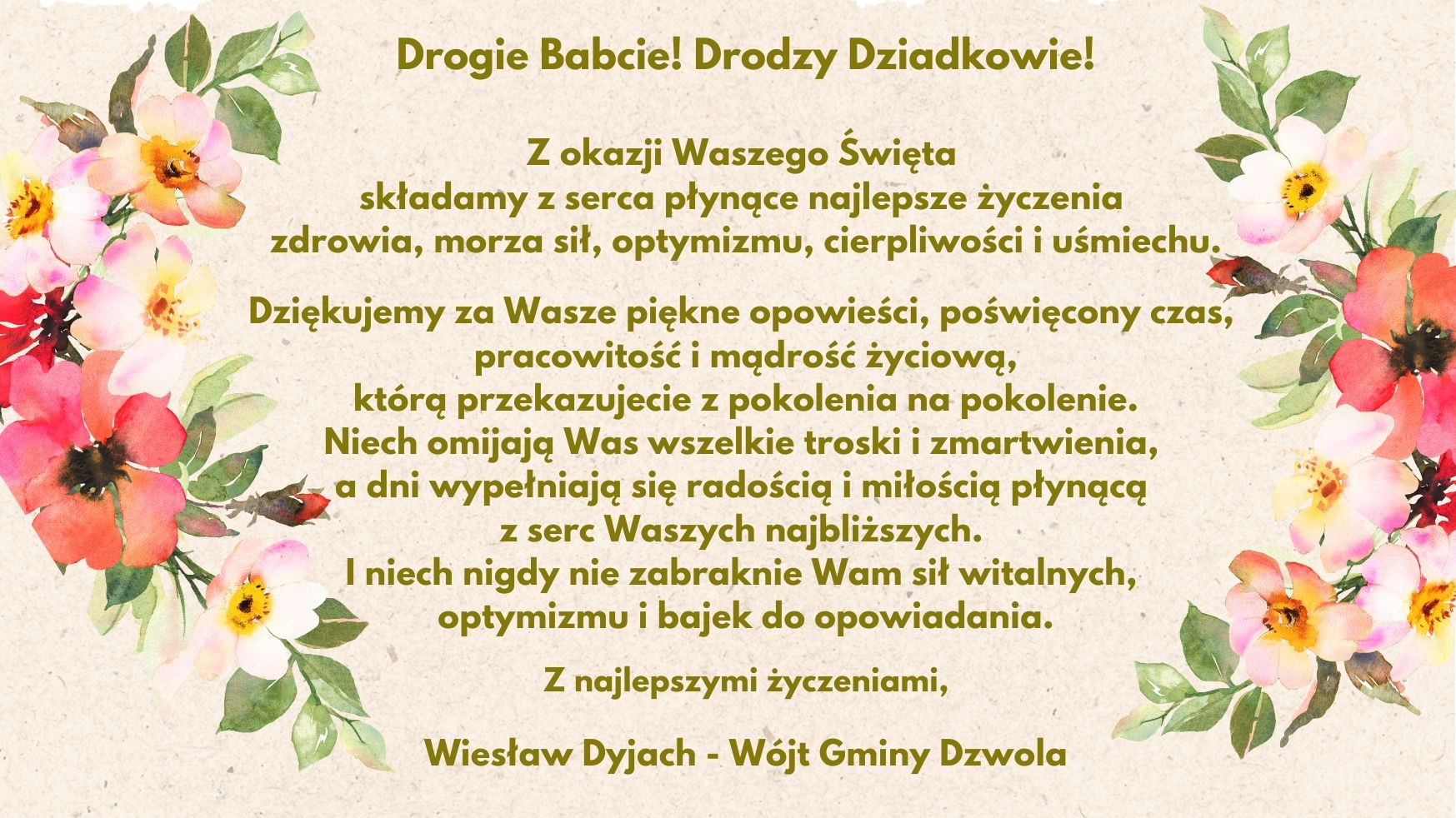 Życzenia z okazji Dnia Babci i Dziadka Opublikowano dnia: 20 stycznia 2026 - 09:13 Co roku w styczniu obchodzimy dwa piękne święta: Dzień Babci i Dzień Dziadka, które przypadają kolejno na 21 i 22 stycznia.